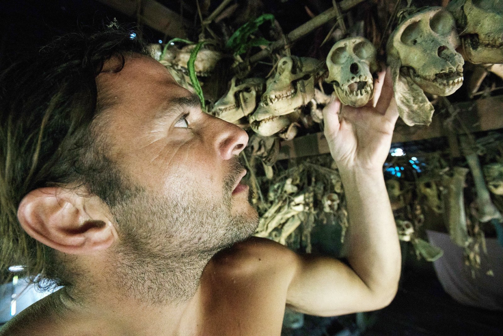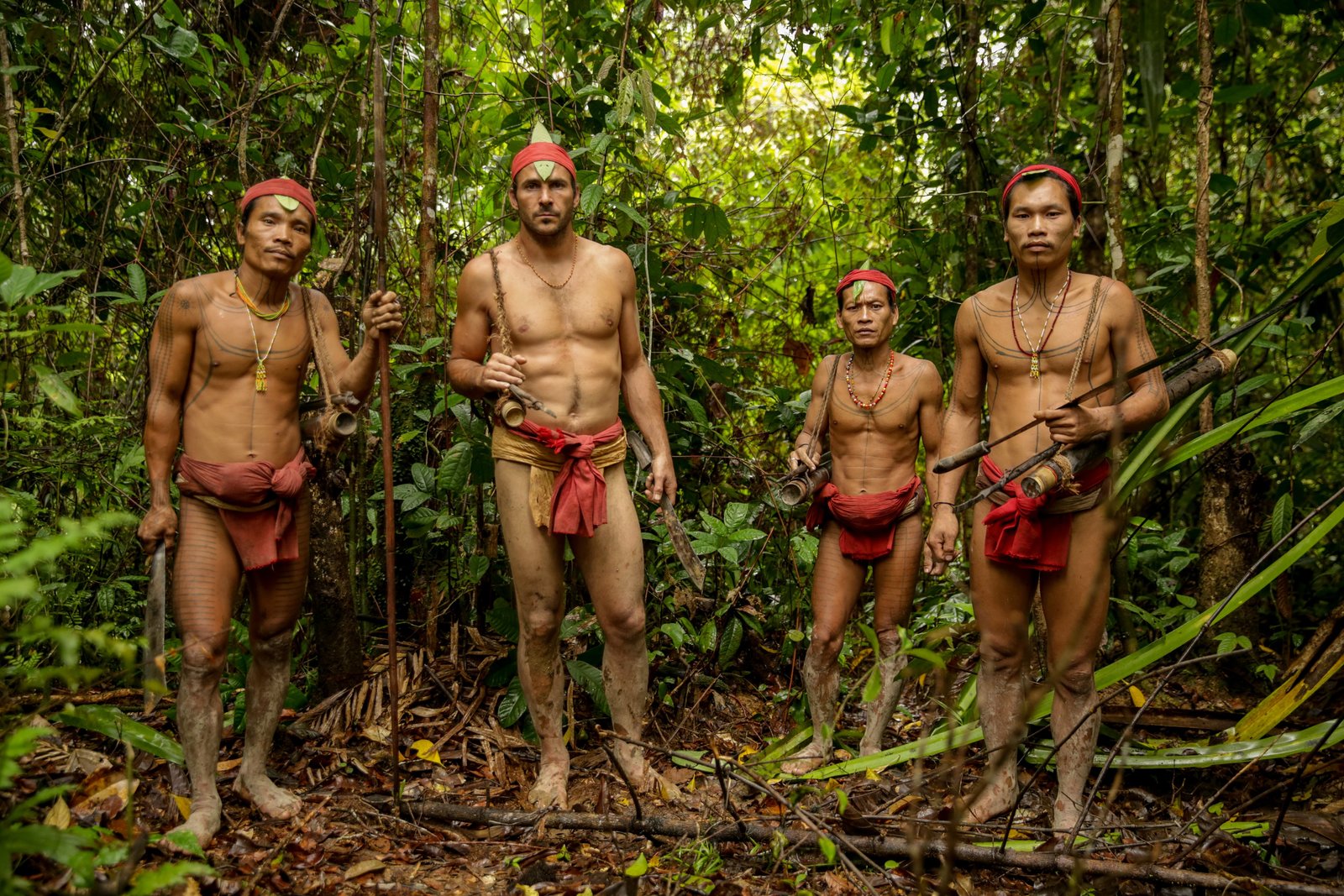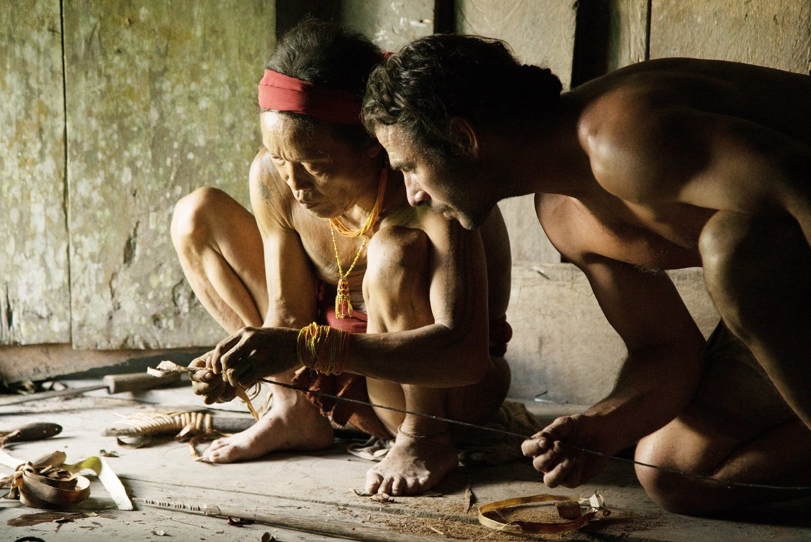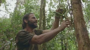 Grüne HölleEin Stammesmitglied zeigt Hazen (r.), wie man einen Giftpfeil herstellt.Bild: © TVNOW / © 2017 National Ge
