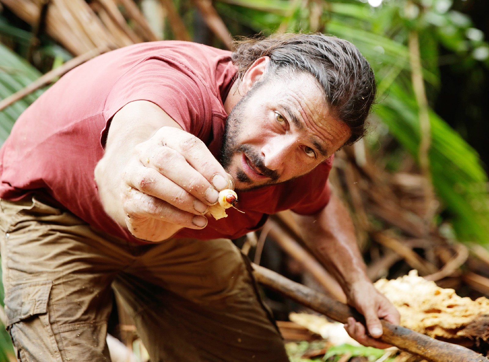 Im Land der KannibalenHazen mit einem Sago-Wurm.Bild: © TVNOW / © 2016 National Ge