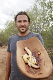 In der Wildnis AustraliensHazen mit Witchetty-Larven.Bild: © TVNOW / © 2017 National Ge