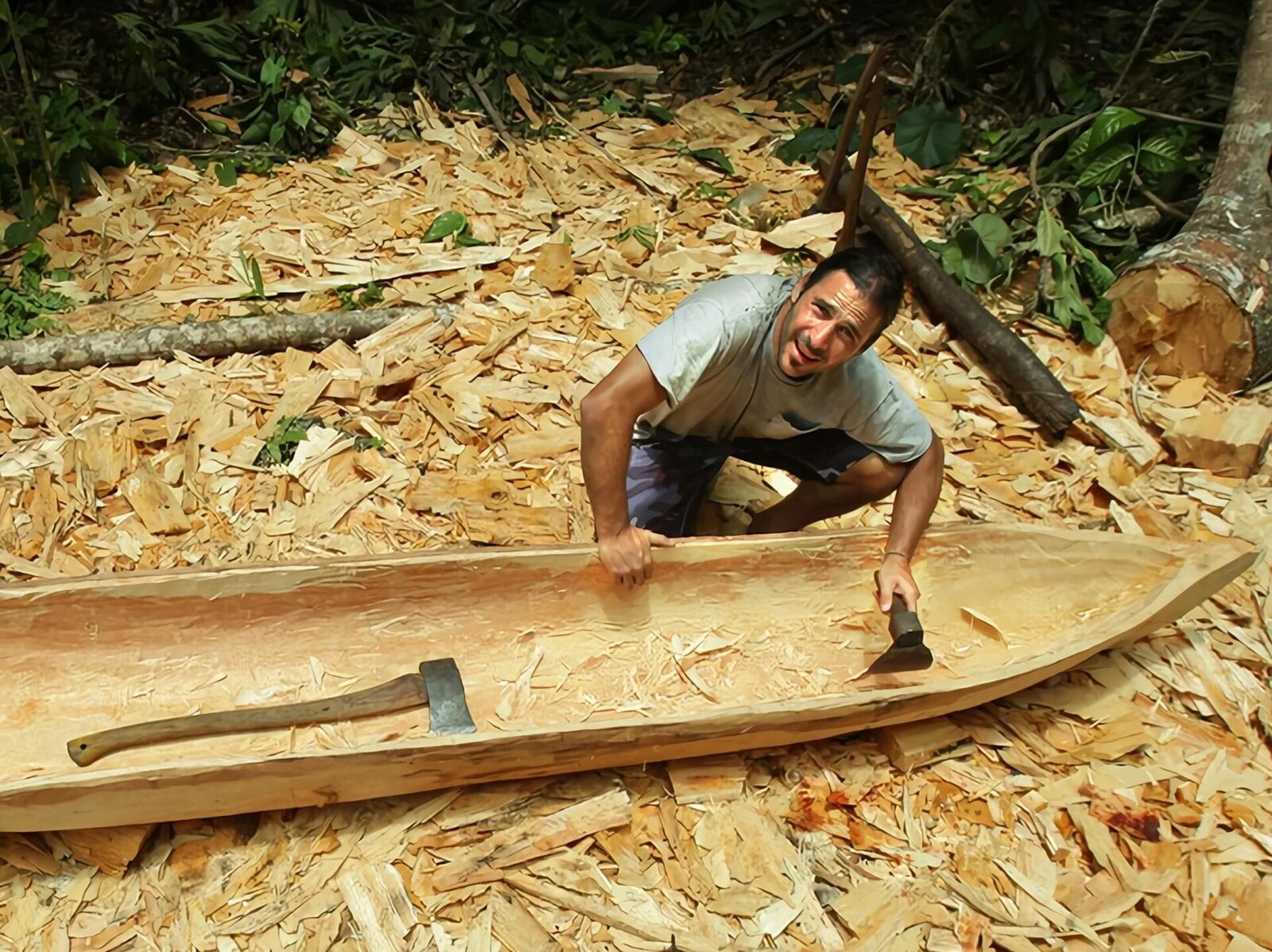 Hai-Jäger der SalomonenHazen working on his dug out canoe.Bild: © Photograph by National Geographic Channels/Samantha Tollworthy