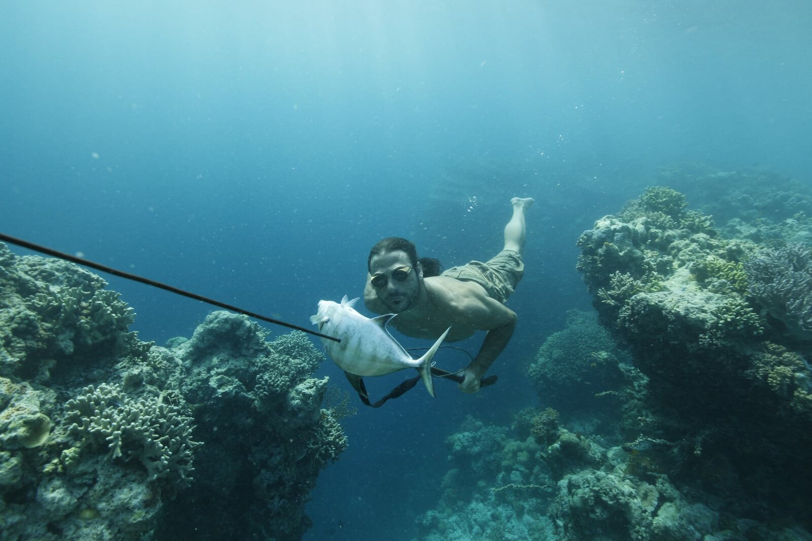 Extreme WerkzeugeHazen swimming through coral with a fish speared on his harpoon. (National Geographic/Sam Mansfield)Bild: © National Geographic/Sam Mansfield / National Geographic / Sam Mansfield