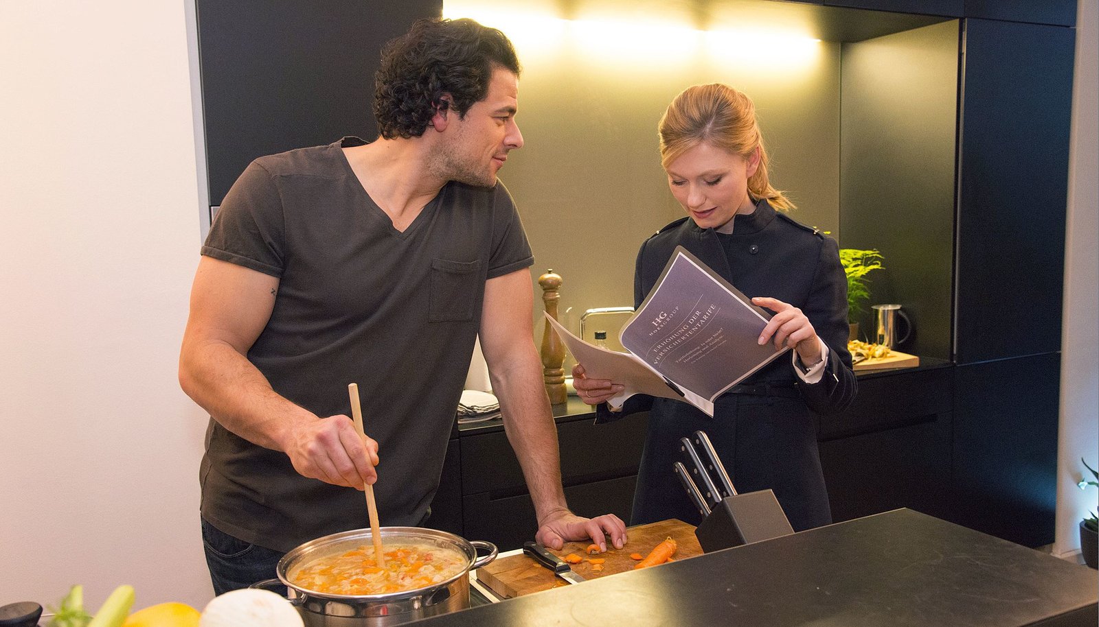Lügen haben schöne BeineAndi (Tobias Licht) und Kathrin (Johanna Chrisine Gehlen) im Rollentausch-Versuch...Bild: © ARD Degeto/Marco Meenen