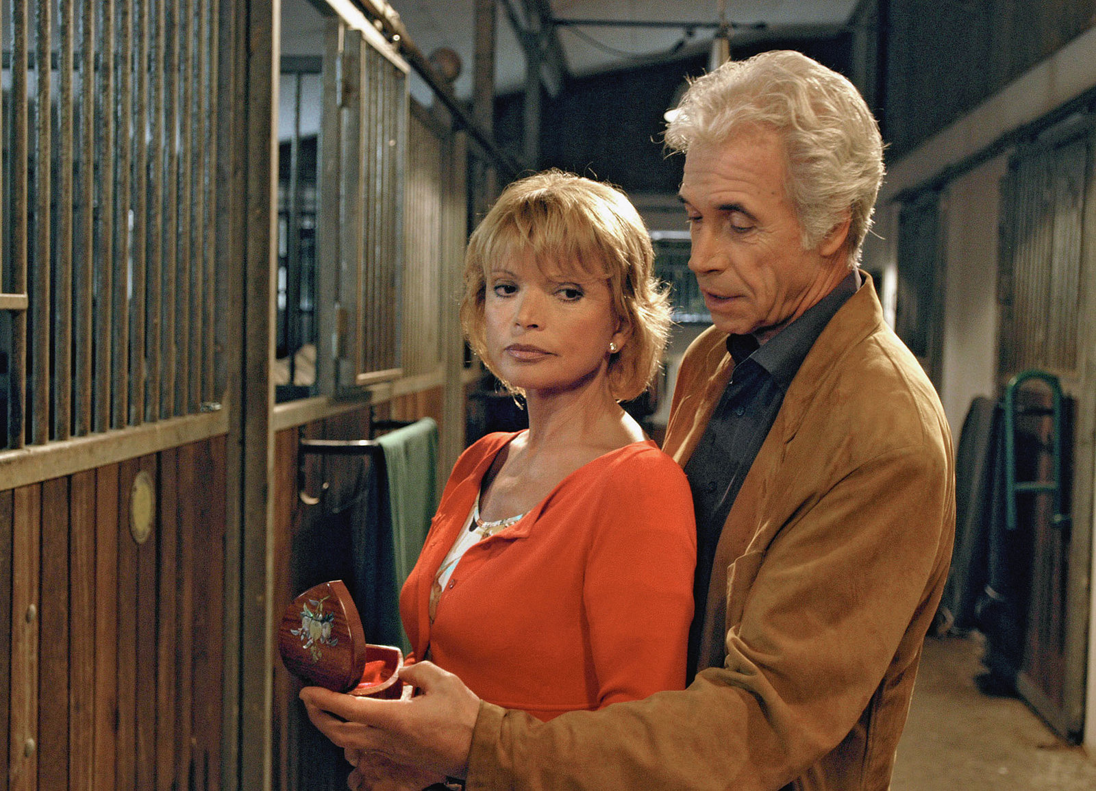 Die Hochzeit auf dem LandePaar beim Ausritt auf dem Lande: Lara Joy Körner als Martina, Mathieu Carriere als Arndt Graf Solm-WeltingenBild: © SRF/©ARD/DEGETO