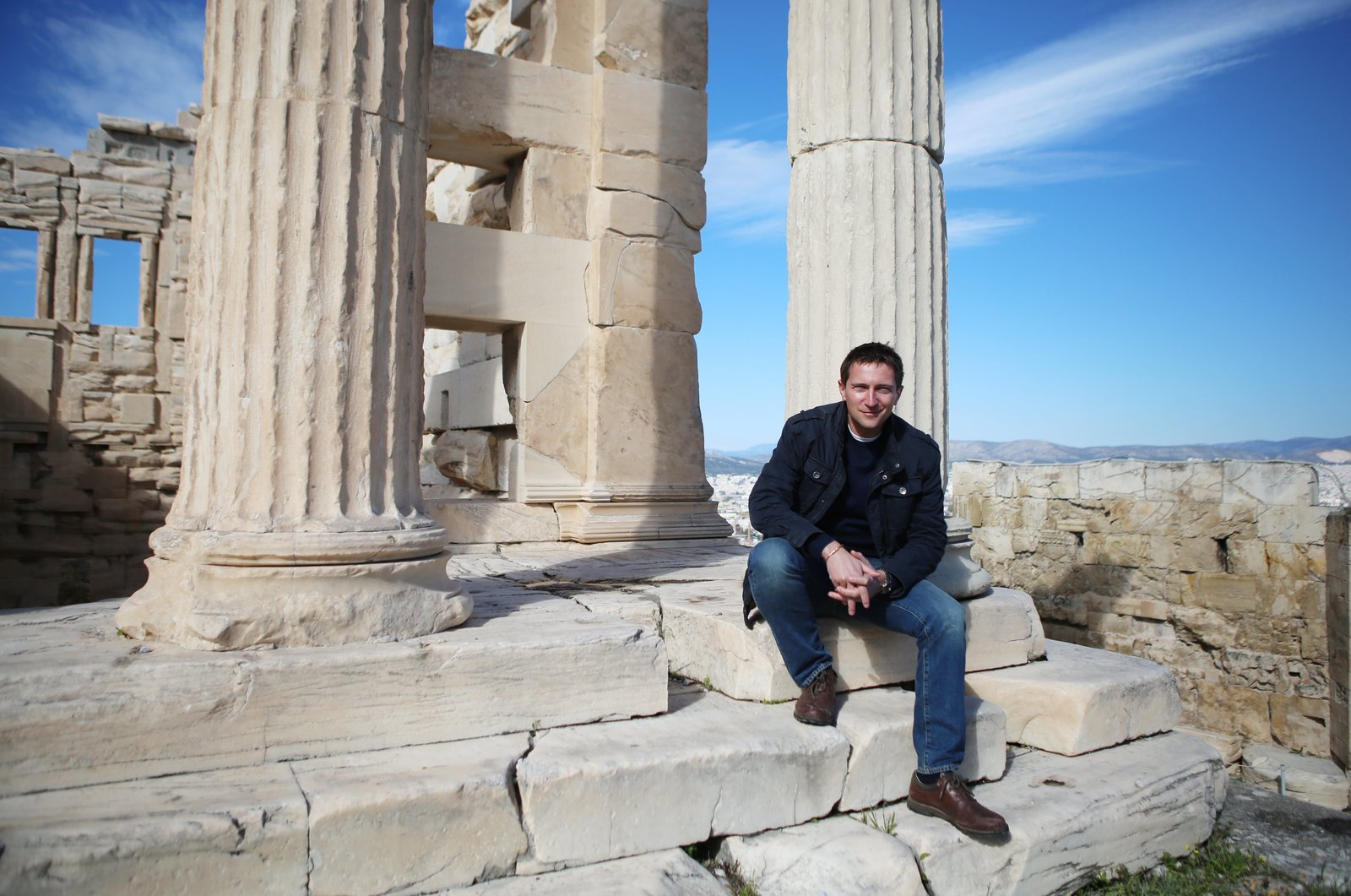 AthenMichael Scott und Matthew Shaw unternehmen eine virtuelle Rundtour durch die Karyatidenhalle auf der Akropolis.Bild: © phoenix/ZDF/ScanLAB Projects