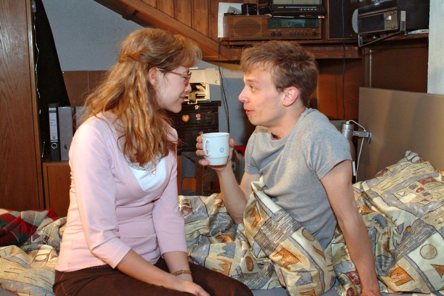 Für die FamilieLisa (Alexandra Neldel, l.) weckt Jürgen (Oliver Bokern, r.) mit der Nachricht, dass sie nicht mehr verlobt sind und sie sich endlich nicht mehr zu verstellen brauchen. Jürgen fällt ein Stein vom Herzen. (Dieses Foto von Alexandra Neldel darf nur in Zusammenhang mit der Berichterstattung über die Serie "Verliebt in Berlin" veröffentlicht und verbreitet werden.)Bild: © Sat.1 Eigenproduktionsbild frei