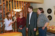 Der RausschmissJetzt reicht's! Zum Entsetzen ihrer Eltern Helga (Ulrike Mai, 2.v.l.) und Bernd (Volker Herold, r.) setzt Lisa (Alexandra Neldel, l.) Max (Alexander Sternberg, 2.v.r.) vor die Tür. (Dieses Foto von Alexandra Neldel darf nur in Zusammenhang mit der Berichterstattung über die Serie "Verliebt in Berlin" veröffentlicht und verbreitet werden.)Bild: © Sat.1 Eigenproduktionsbild frei