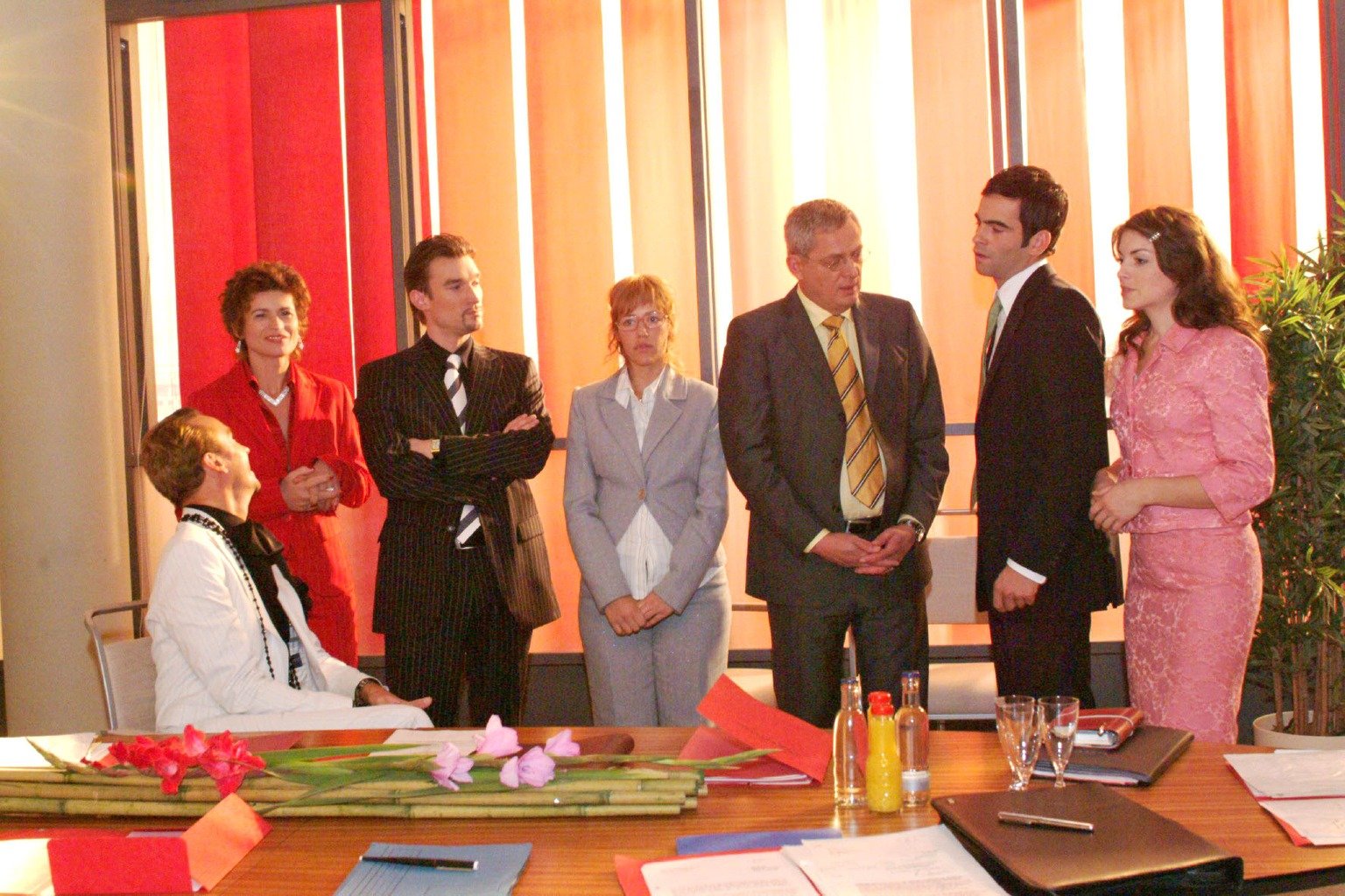 Neue AufteilungenLisa findet bei Friedrich Unterstützung für ihre Entscheidung, David und Richard gleichermaßen zu Geschäftsführern zu ernennen. V.l.n.r.: Hugo (Hubertus Regout), Sophie (Gabrielle Scharnitzky), Richard (Karim Köster), Lisa (Alexandra Neldel), Friedrich (Wilhelm Manske), David (Mathis Künzler), Mariella (Bianca Hein). (Dieses Foto von Alexandra Neldel darf nur in Zusammenhang mit der Berichterstattung über die Serie "Verliebt in Berlin" veröffentlicht und verbreitet werden.)Bild: © Sat.1 Eigenproduktionsbild frei