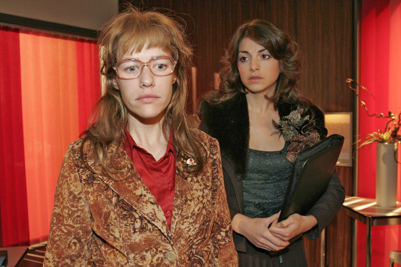 Verliebt in BlumDie arbeitslose Yvonne (Bärbel Schleker, l.) taucht überraschend an Lisas (Alexandra Neldel, r.) Arbeitsplatz auf und bittet sie, ihr zu helfen, bei Kerima Moda anzufangen. (Dieses Foto von Alexandra Neldel darf nur in Zusammenhang mit der Berichterstattung über die Serie "Verliebt in Berlin" veröffentlicht und verbreitet werden.)Bild: © Sat.1 Eigenproduktionsbild frei