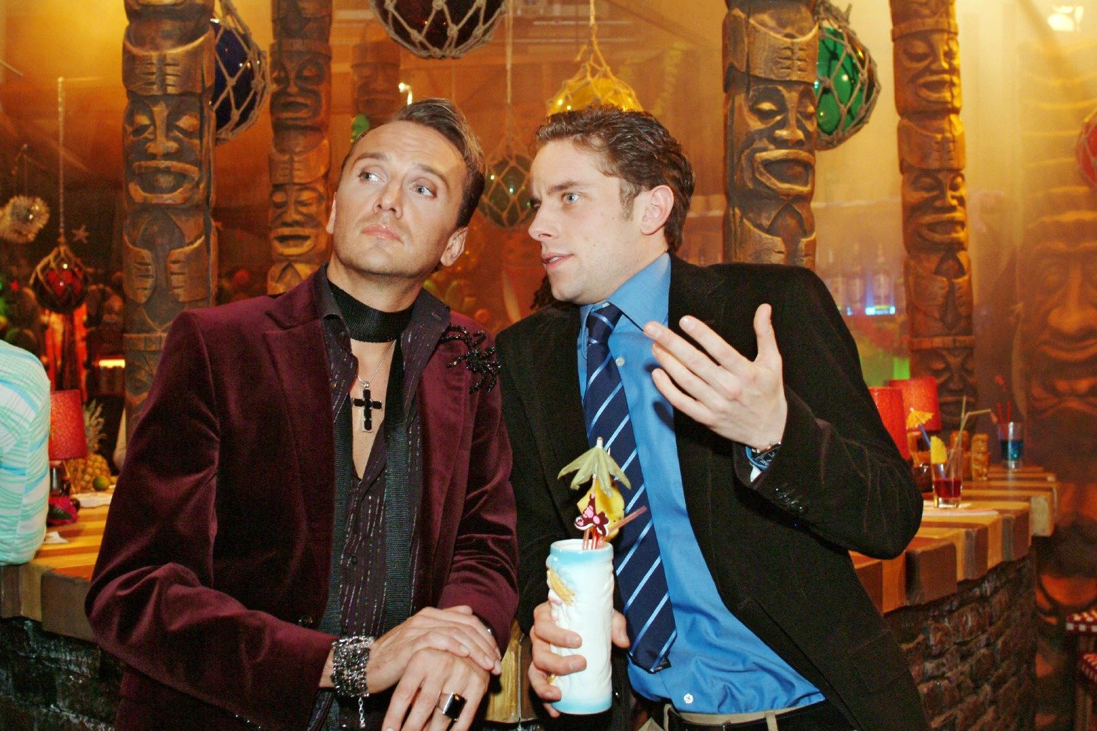 Die NervensägeHugo (Hubertus Regout, l.) ist mit Max (Alexander Sternberg, r.) auf einen Drink in die Tiki-Bar mitgekommen, ohne zu ahnen, dass sie dort auch Yvonne wieder treffen ...Bild: © Sat.1 Eigenproduktionsbild frei