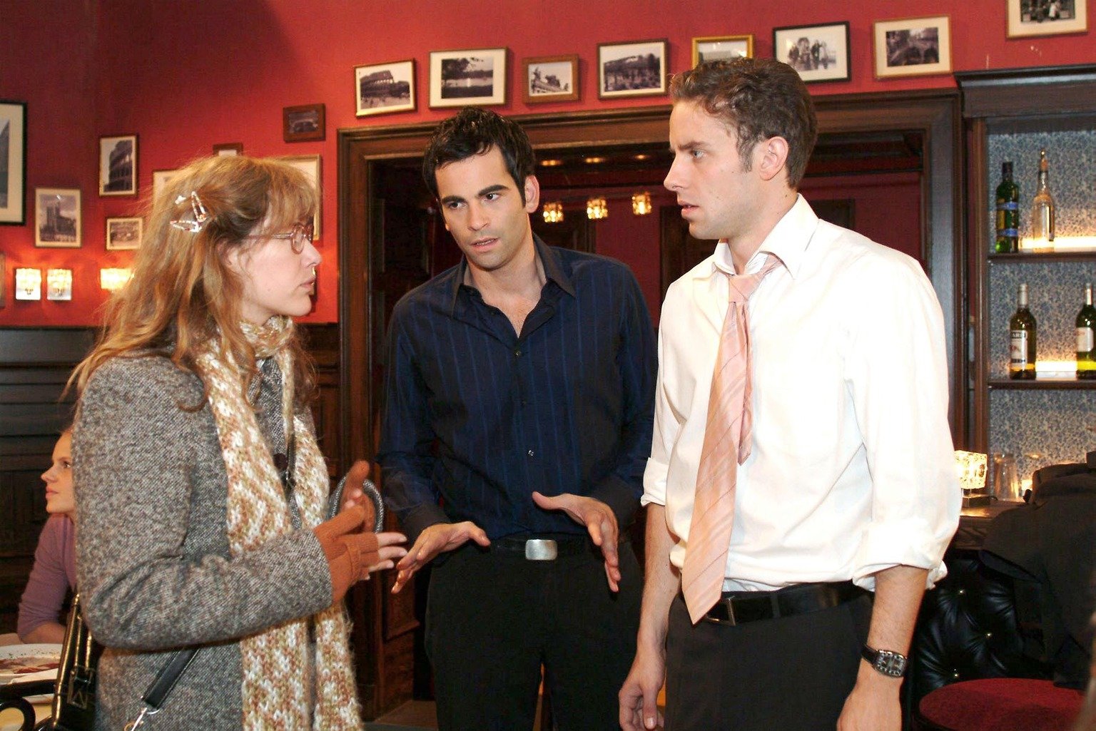 Dunkle VergangenheitLisa (Alexandra Neldel, r.) ist entsetzt ob der unfairen Schmutzkampagne gegen Richard. Jürgen (Oliver Bokern, l.) hingegen argumentiert wie David: Er hält Lisa vor Augen, wie skrupellos Richard selber ist und stimmt sie mit seinen Worten nachdenklich ... (Dieses Foto von Alexandra Neldel darf nur in Zusammenhang mit der Berichterstattung über die Serie "Verliebt in Berlin" veröffentlicht und verbreitet werden.)Bild: © Sat.1 Eigenproduktionsbild frei