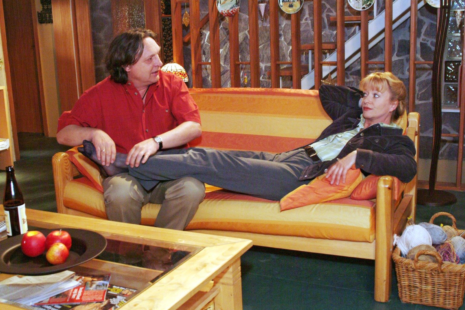 WomanizerHelga (Ulrike Mai, r.) hat sich entschieden, den Aushilfsjob im Gartenlokal nicht anzunehmen. Bernd (Volker Herold, l.) ist darüber sehr erleichtert.Bild: © Sat.1 Eigenproduktionsbild frei