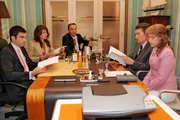 Das ParfumBei der Besprechung zeigt sich Lisa (Alexandra Neldel, r.) vor Mariella (Bianca Hein, 2.v.l.), Hugo (Hubertus Regout, M.) und Richard (Karim Köster, 2.v.r.) skeptisch gegenüber Davids (Mathis Künzler, l.) Vorschlag, ein Parfum auf den Markt zu bringen. (Dieses Foto von Alexandra Neldel darf nur in Zusammenhang mit der Berichterstattung über die Serie "Verliebt in Berlin" veröffentlicht und verbreitet werden.)Bild: © Sat.1 Eigenproduktionsbild frei