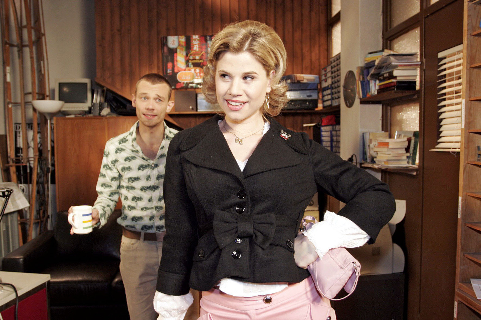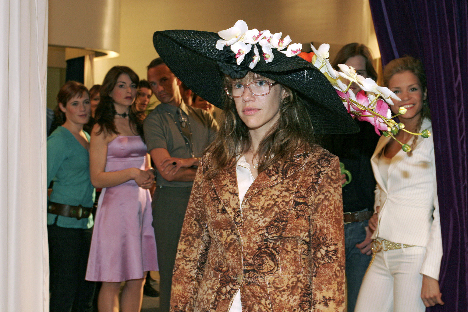 Missglückter VersuchLisa (Alexandra Neldel, M.) glaubte allein zu sein, als sie heimlich Mariellas Hut aufprobiert. Dank Sabrinas (Nina-Friederike Gnädig, r.) Gehässigkeit wird sie jedoch wieder einmal zum Gespött der Firma. (Dieses Foto von Alexandra Neldel darf nur in Zusammenhang mit der Berichterstattung über die Serie "Verliebt in Berlin" veröffentlicht und verbreitet werden.)Bild: © Sat.1 Eigenproduktionsbild frei