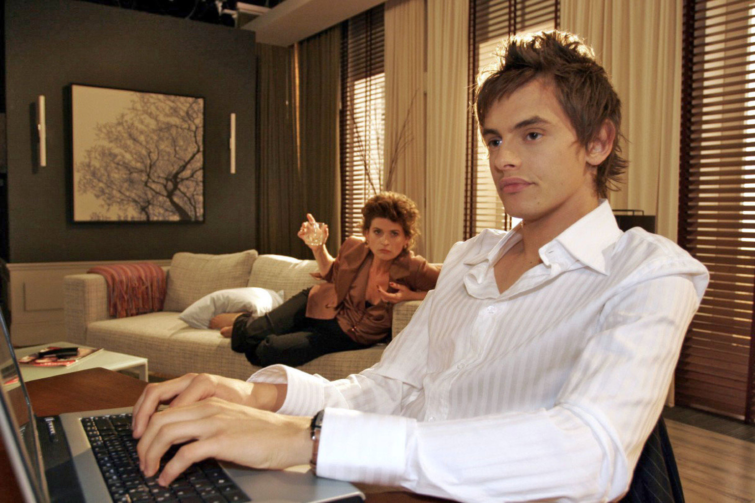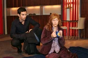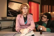 Davids ZweifelSophie (Gabrielle Scharnitzky, l.) diktiert Alex (Shai Hoffmann, r.) Episoden aus der Anfangsgeschichte von Kerima Moda - und von dem jungen Geschäftsführer Friedrich.Bild: © Sat.1 Eigenproduktionsbild frei