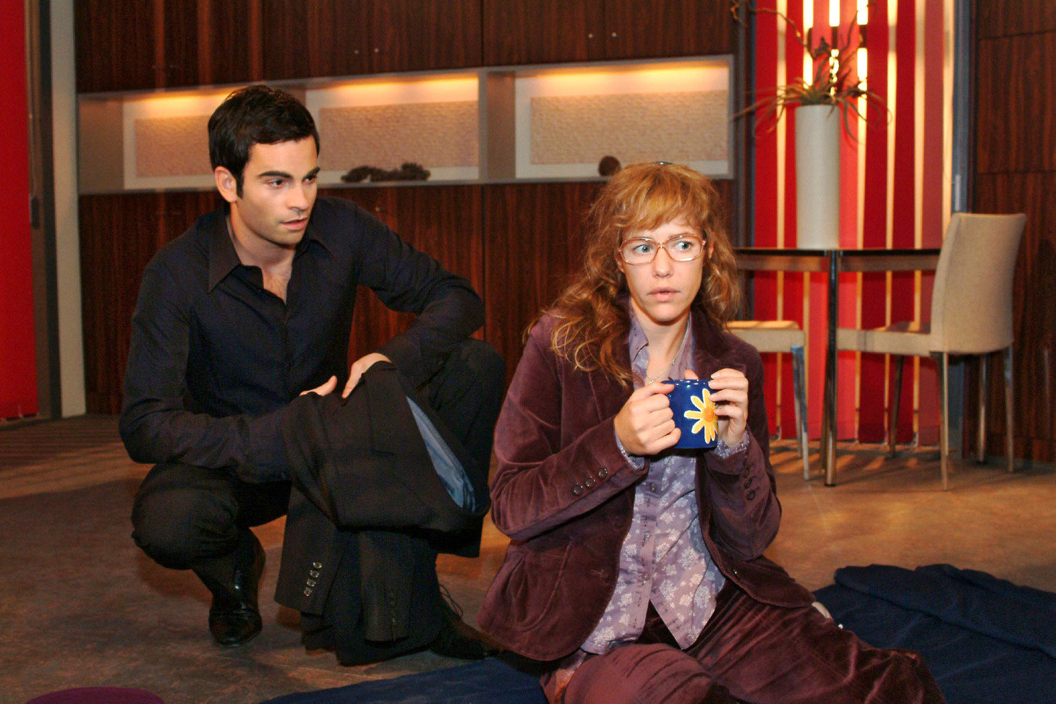 Im AufwindGerade als David (Mathis Künzler, vorne r.) sich auf der sicheren Seite wähnt, überbringt ihm Lisa (Alexandra Neldel, vorne l.) schockierende Neuigkeiten ... (Dieses Foto von Alexandra Neldel darf nur in Zusammenhang mit der Berichterstattung über die Serie "Verliebt in Berlin" veröffentlicht und verbreitet werden.)Bild: © Puls 8