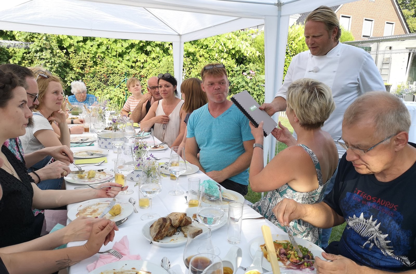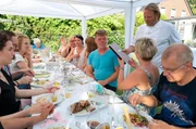 Sonntagsbraten wie bei Muttern! Björn Freitag auf der Spur eines alten FamilienrezeptsBeim großen Familienfest der Familie Küppers überreicht Björn Freitag (r, stehend) das Kochbuch mit seinen gesammelten Rezepten.Bild: © WDR/Solis TV/Oliver Herber