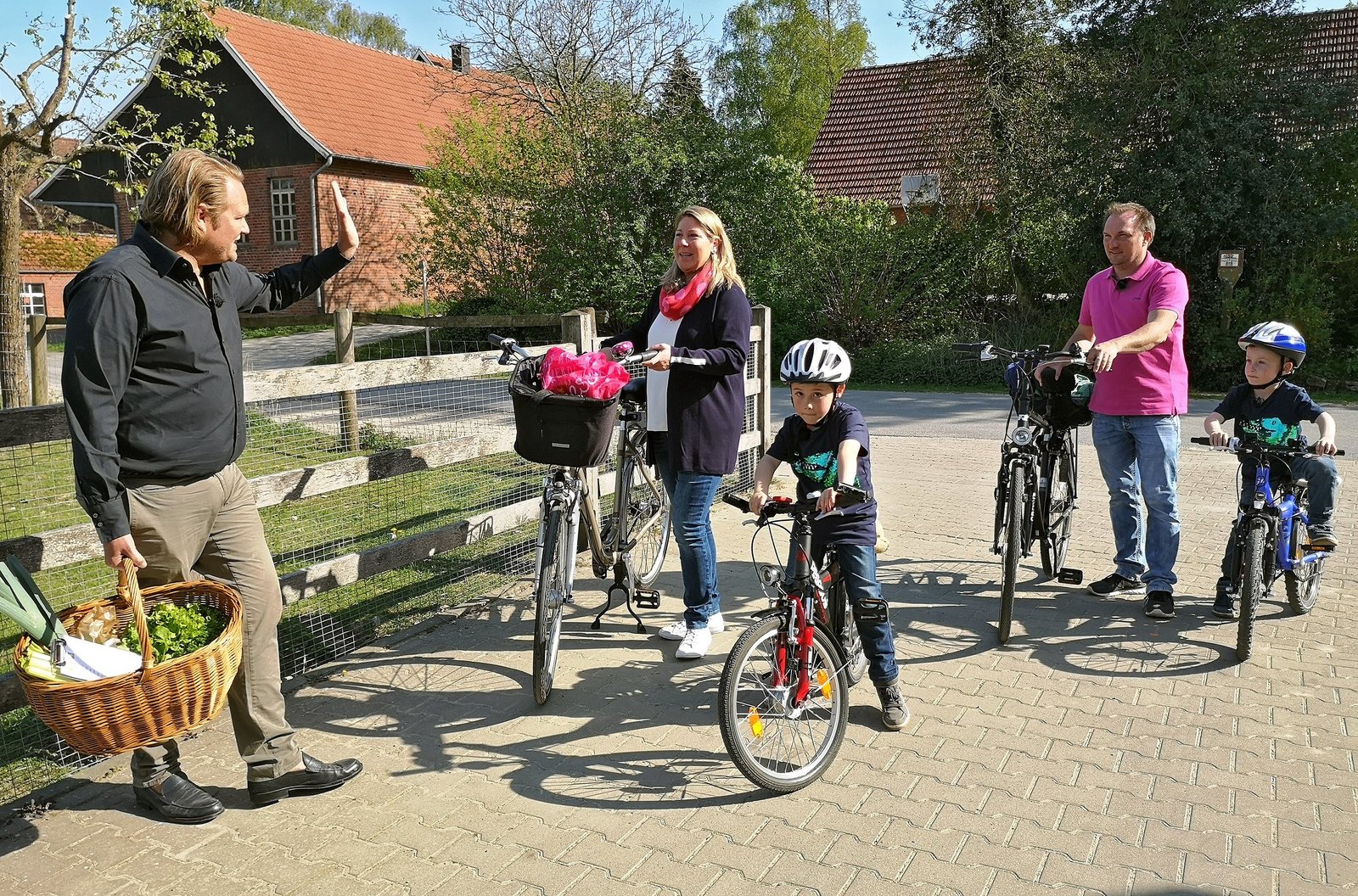 Schnelle Küche, aber gesund und günstig!Bei Bauer Christoph Bonnie (2. v. l.) dürfen Familie Schulte-Sperlich und Björn Freitag (l.) bei der Gemüseernte mitanpacken.Bild: © WDR/solis TV/?