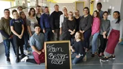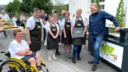 Die Catering-Herausforderung - Björn Freitag kocht mit "Caritas-Azubis"Die Hauswirtschaftsgruppe der Caritas Arnsberg-Oeventrop feiert zusammen mit Profikoch Björn Freitag (r) den Erfolg ihres Caterings.Bild: © WDR/solis TV/Joshua Stolz