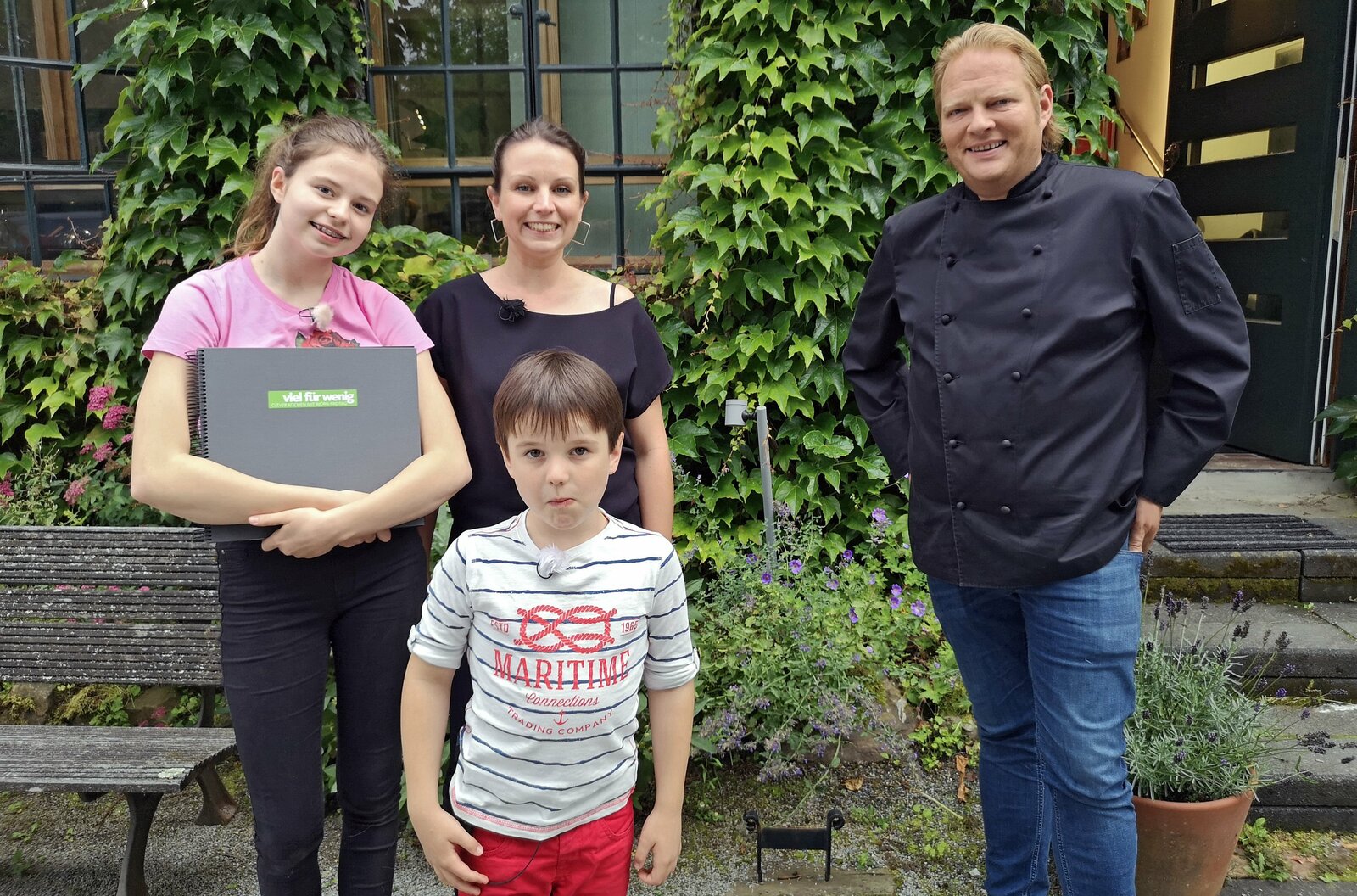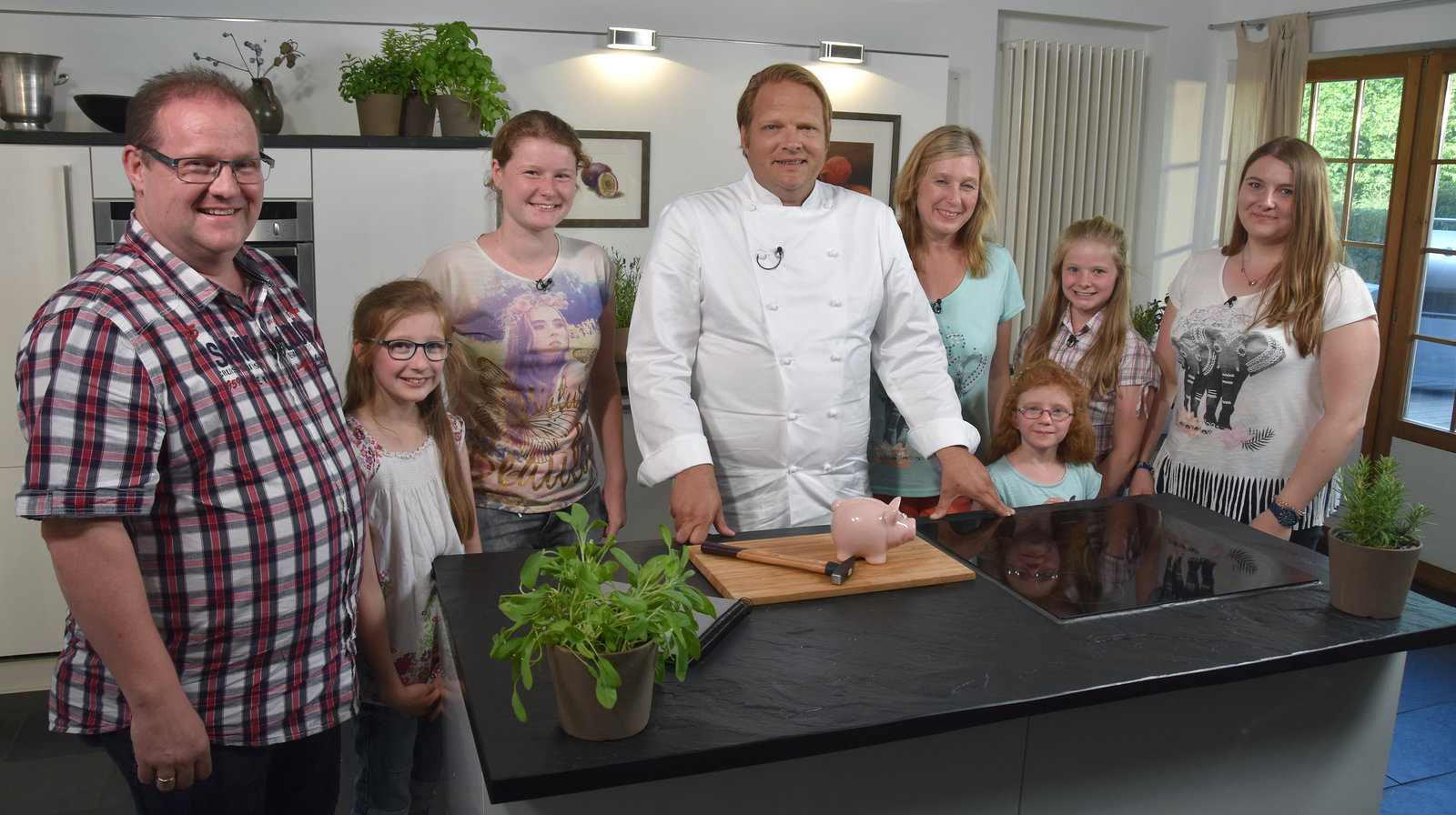 So köstlich wie bei Oma - Klassischer Fleischgenuss mit TraditionBjörn Freitag (r) zeigt Familie Heinen, wie köstliche Fleischgerichte aus Großmutters Zeiten gelingen.Bild: © WDR/solis TV/Oliver Herber