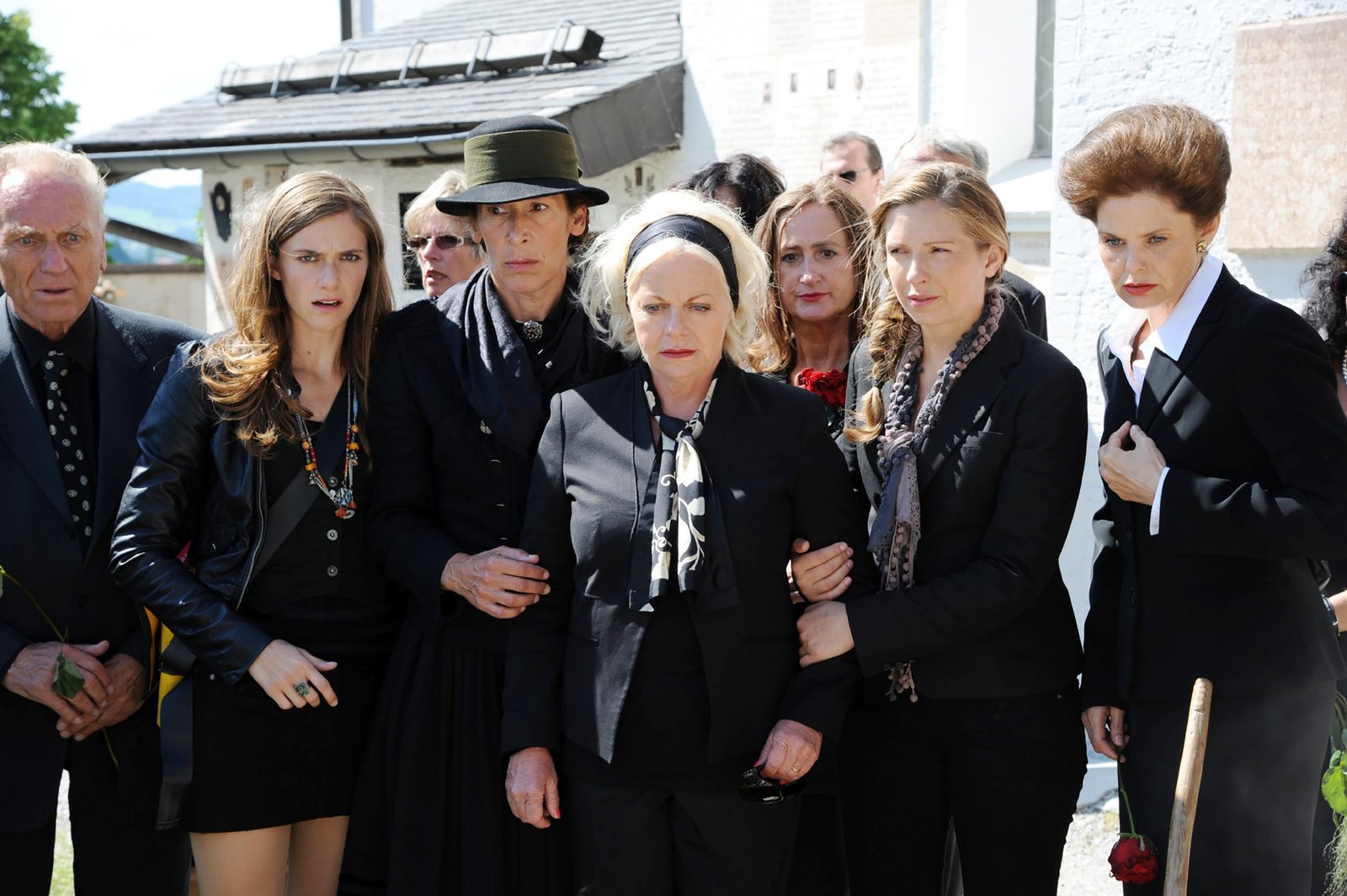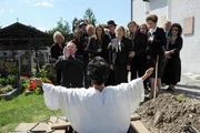 Auferstanden"Vier Frauen und ein Todesfall", "Auferstanden." Während Dorfwirt Salchegger wegen des Seitensprungs mit Gerti Zeilinger und seinen nagenden Schuldgefühlen die Proben zu den Ilmer Passionsspielen fast unmöglich macht, beginnt Franzi ein Resozialisierungssprojekt namens "The Jailhouse" für ehemalige Häftlinge. Doch das ist alles erst der Anfang. Denn als Gerti tags darauf leblos in ihrer Wohnung aufgefunden wird, Salcheggers Frau Maria angblich kurz davor bei ihr war und kein schlüssiges Alibi vorweisen kann, tritt der forsche Kripobeamte Köhlmeier auf den Plan. Und dann erlebt Dorf Ilm beim Begräbnis der Gerti Zeilinger etwas selbst hier noch nie Dagewesenes.Im Bild (v.li.): Siegfried Walther (Zeilinger), Michael Ostrowski (Franzi), Miriam Stein (Pippa), Adele Neuhauser (Julie), Brigitte Kren (Maria), Martina Poel (Sabine), Brigitte Jaufenthaler (Frau Bürgermeister).Bild: © ORF III