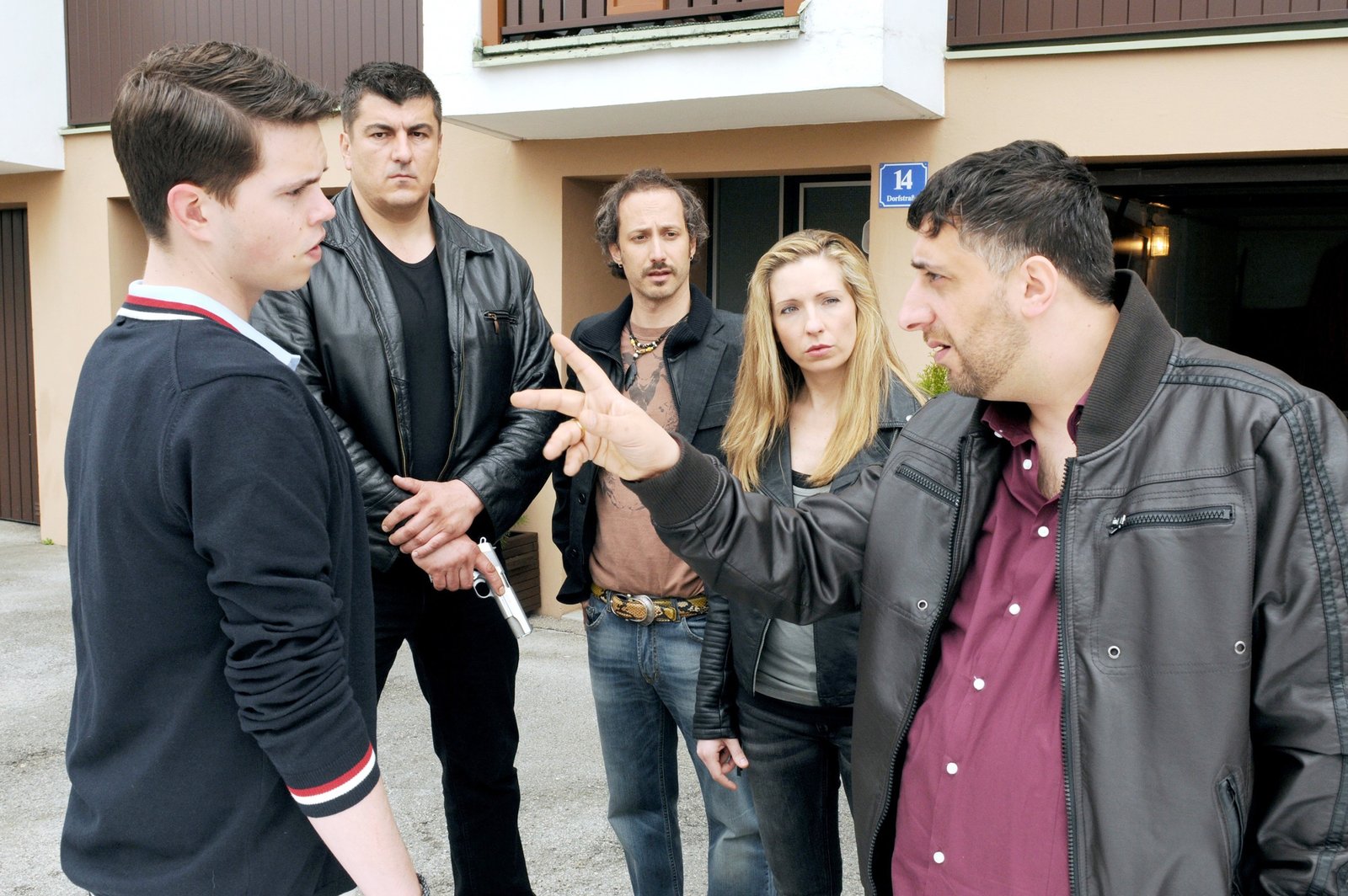 Liebesknochenv.l.: Rocco (David Christopher Roth), Bero (Berislav Arezina), Franzi (Michael Ostrowski), Sabine (Martina Poel) und Kemal Cetin (Kida Khodr Ramadan)Bild: © RTL Crime