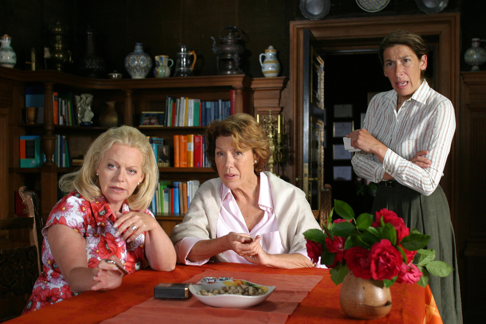 Nebelsuppe"Vier Frauen und ein Todesfall", "Nebelsuppe." In einer Klamm wird die Leiche des örtlichen Bankdirektors gefunden. Er ist bei einer Bergtour abgestürzt, seine Frau kann ihn nur an seinen neuen Sportschuhen identifizieren. Die vier Frauen mutmaßen gleich, dass Direktor Gruber keines natürlichen Todes gestorben sein kann, schließlich war er ein äußerst geübter Bergsteiger. Sie starten ihre Nachforschungen und sollen Recht behalten. Gruber war in dubiose Ostgeschäfte verwickelt und hat dabei viel Geld anderer verwirtschaftet, sein eigenes Vermögen aber rechtzeitig in Sicherheit gebracht. Es gibt also Einige, die ganz froh sind, dass der Herr Direktor das Zeitliche gesegnet hat und das nicht nur im Ort, sondern offenbar weit über die engen Grenzen hinaus.Im Bild (v.li.): Brigitte Kren (Maria), Gaby Dohm (Henriette), Adele Neuhauser (Julie).Bild: © 3sat