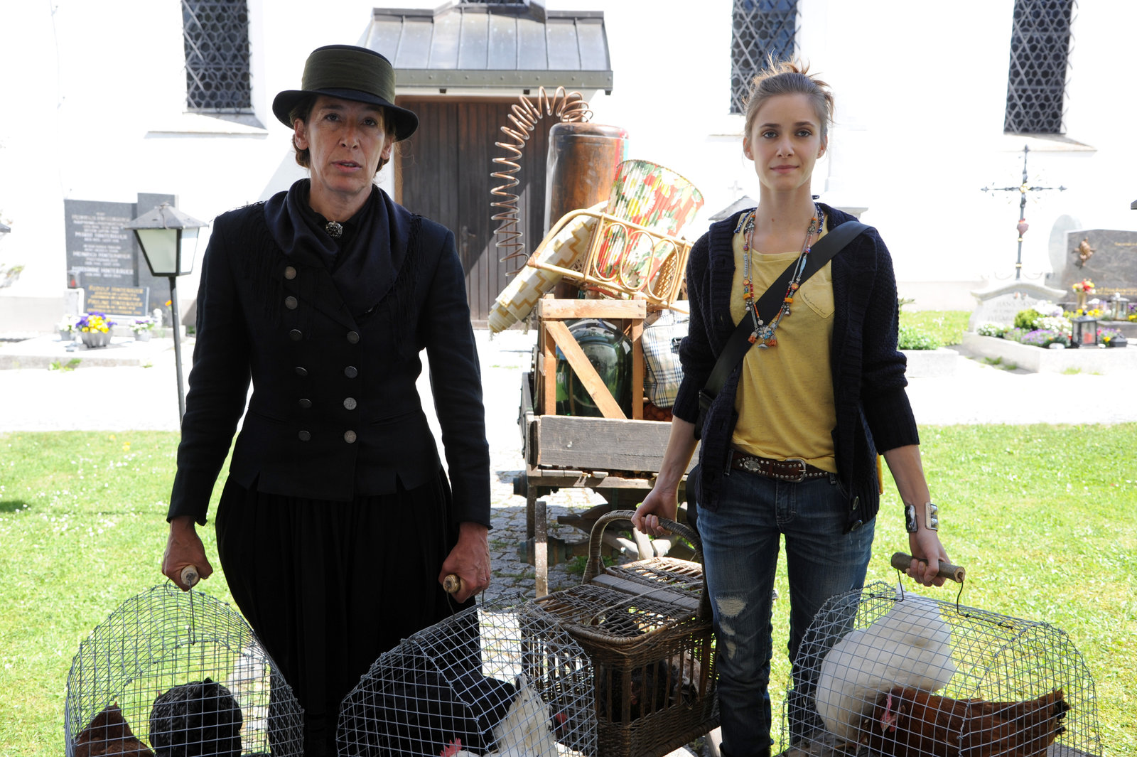 Nachgeburt"Vier Frauen und ein Todesfall", "Nachgeburt." Dorf Ilm und vor allem die Zirbner Julie leiden noch immer unter den Folgen des tragischen Unfalls, die Ermittlungen treten auf der Stelle, lediglich eine Kontaktlinse kann im Tatfahrzeug sichergestellt werden. Herkunft unbekannt. Julie wiederum erscheint der tote Raphael immer wenn sie bei der Bäuerin Walpurga zu Besuch und auf der Toilette ist. Damit ist sie natürlich gänzlich überfordert. Als Walpurga sie zum Trostsaufen zu sich ins Haus einlädt, kommt es erneut zu einem tragischen Todesfall, doch diesmal ist der Täter schnell gefunden. Das Dorfattentat allerdings bleibt weiterhin unaufgeklärt.Im Bild (v.li.): Miriam Stein (Pippa), Julia Gschnitzer (Josepha/Walpurga Ratzinger), Gerhard Greiner (Toni Steiger).Bild: © ORF eins