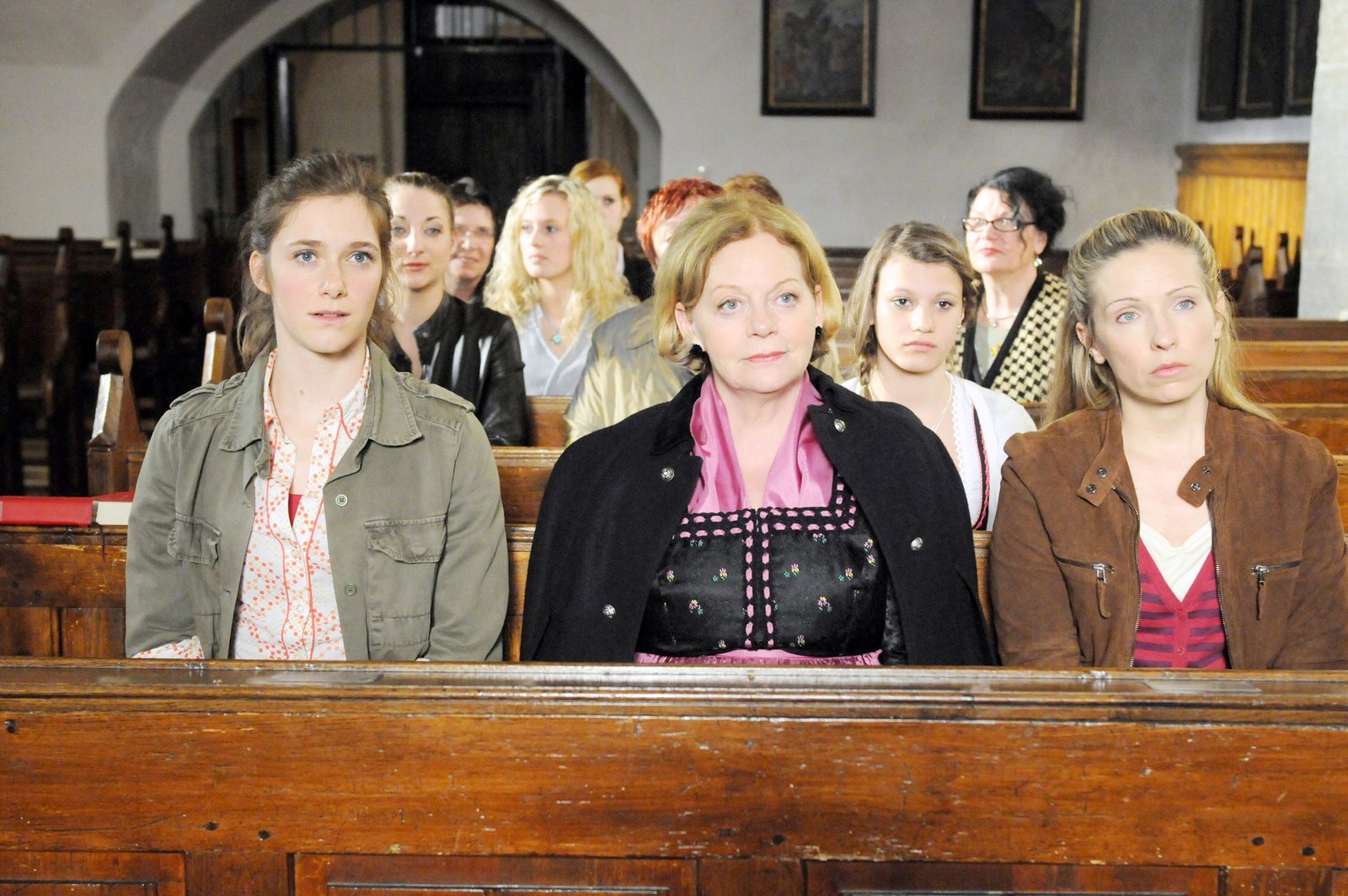 Schlussstrich"Vier Frauen und ein Todesfall", "Schlussstrich." Showdown in Dorf Ilm. Stück für Stück können die vier Frauen alle Puzzleteilchen zusammensetzen und das Rätsel um die Unfallnacht lösen. Schuld an allem ist nicht mehr und nicht weniger ein Manuskript, Toni's Roman, den einige Dorfbewohner für bare Münze gehalten haben. Und auch der Herr Pfarrer ist wieder heimgekehrt und bekennt sich zu seinen Nachkommen. Was also tun, wenn keiner frei von Schuld ist? So weitermachen wie bisher - man wird sehen, zumindest finden die Toten ihren endgültigen Frieden und so kann auch Julie ihren Raphi am Ende endgültig loslassen.Im Bild (v.li.): Pia Mock (Mutter Pfarrer), Michael Ostrowski (Franzi), Brigitte Kren (Maria), Charly Rabanser (Salchegger), David Christopher Roth (Rocco).Bild: © ORF eins