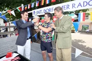 Blutsbande"Vier Frauen und ein Todesfall", "Blutsbande." Das gesamte Dorf hofft beim Radrennen durch Ilm auf einen Etappensieg des örtlichen Radprofis und österreichischen Hoffnungsträgers im Radsport, Rudi Brunner. Tatsächlich kommt Rudi als erster ins Ziel - und fällt tot vom Rad. Der Präsident des Radsportverbandes weist alle Dopingvorwürfe zurück. Doch als die Ergebnisse aus dem Labor kommen, zeigen sie etwas anderes: Rudi hatte mehr fremdes als eigenes Blut in seinem dürren Körper: Fremdblutdoping! Die vier Frauen rühren wieder einmal ordentlich um und stoßen auf ein mörderisches Familiengeheimnis.Im Bild (v.li.): Christian Diendorfer, Philipp Röhrich, Georges Kern.Bild: © ORF/Mike Vogl