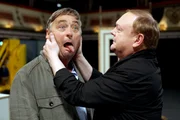 Doppelgänger"VITASEK?", "Doppelgänger." Vitásek wird vom ORF nahegelegt, Schauspielunterricht zu nehmen. Widerwillig sagt er zu, verlässt aber die erste Unterrichtsstunde im Streit. Bald stellt er fest, wie schwierig es ist, sich selbst zu spielen. Er befragt seine Familie, wie er denn so sei und nervt vor allem seine Teenager-Tochter damit ungemein. Vitásek entschließt sich einen Psychiater aufzusuchen und gerät dabei an einen Namensvetter, der ihn seltsamerweise überhaupt nicht leiden kann. Schließlich nimmt Vitásek den Rat des Arztes an, auch seine dunkleren Seiten zuzulassen.Im Bild (v.li.): Andreas Vitásek (Andreas Vitásek), Siegfried Walter (Coach).Bild: © 3sat