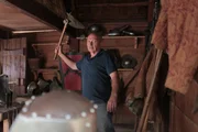 Angriff aus der LuftDer Kriegshammer ist im Mittelalter eine der wenigen Waffen, die dem Ritter gefährlich werden kann. Experte Mike Loades demonstriert den Kriegshammer in der Waffenkammer des Middelaldercentret (Dänemark).Bild: © ZDF und Vivien Schwarzenberg