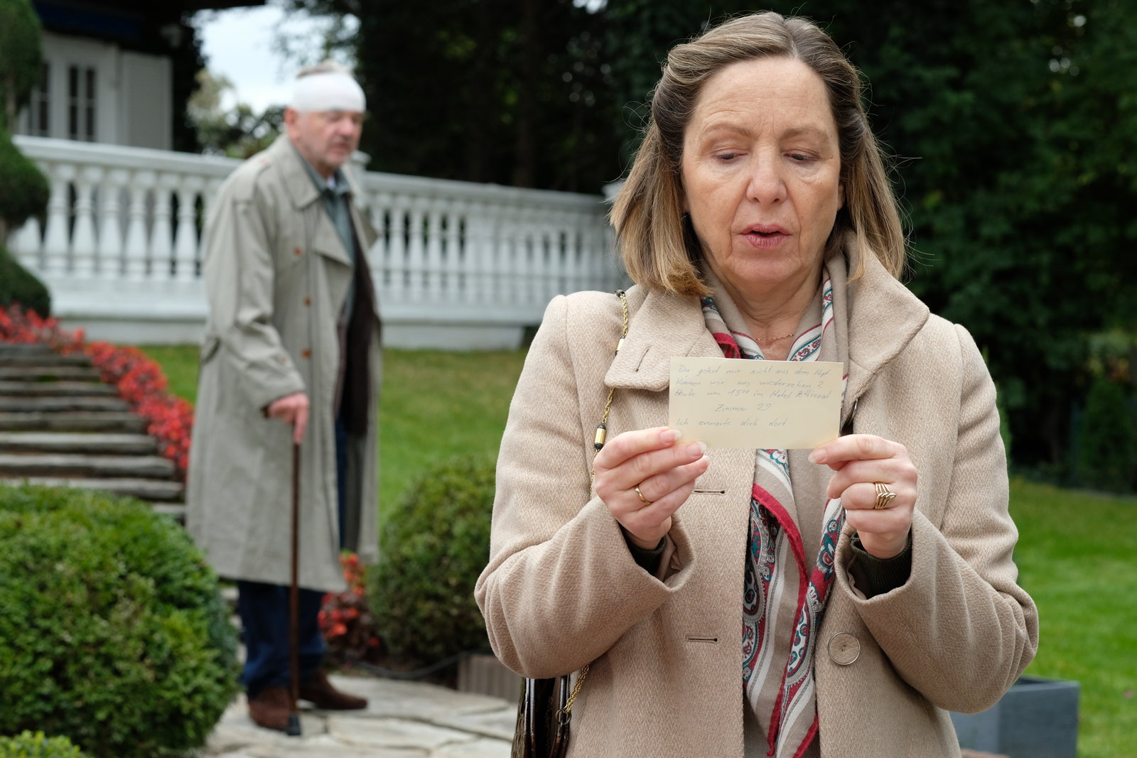 HeimlichkeitenAuf der Frontseite: Bernhard Schir als Hadrian Melzer, Martina Ebm als Caroline MelzerBild: © SRF/ORF/MR Film/Petro Domenigg