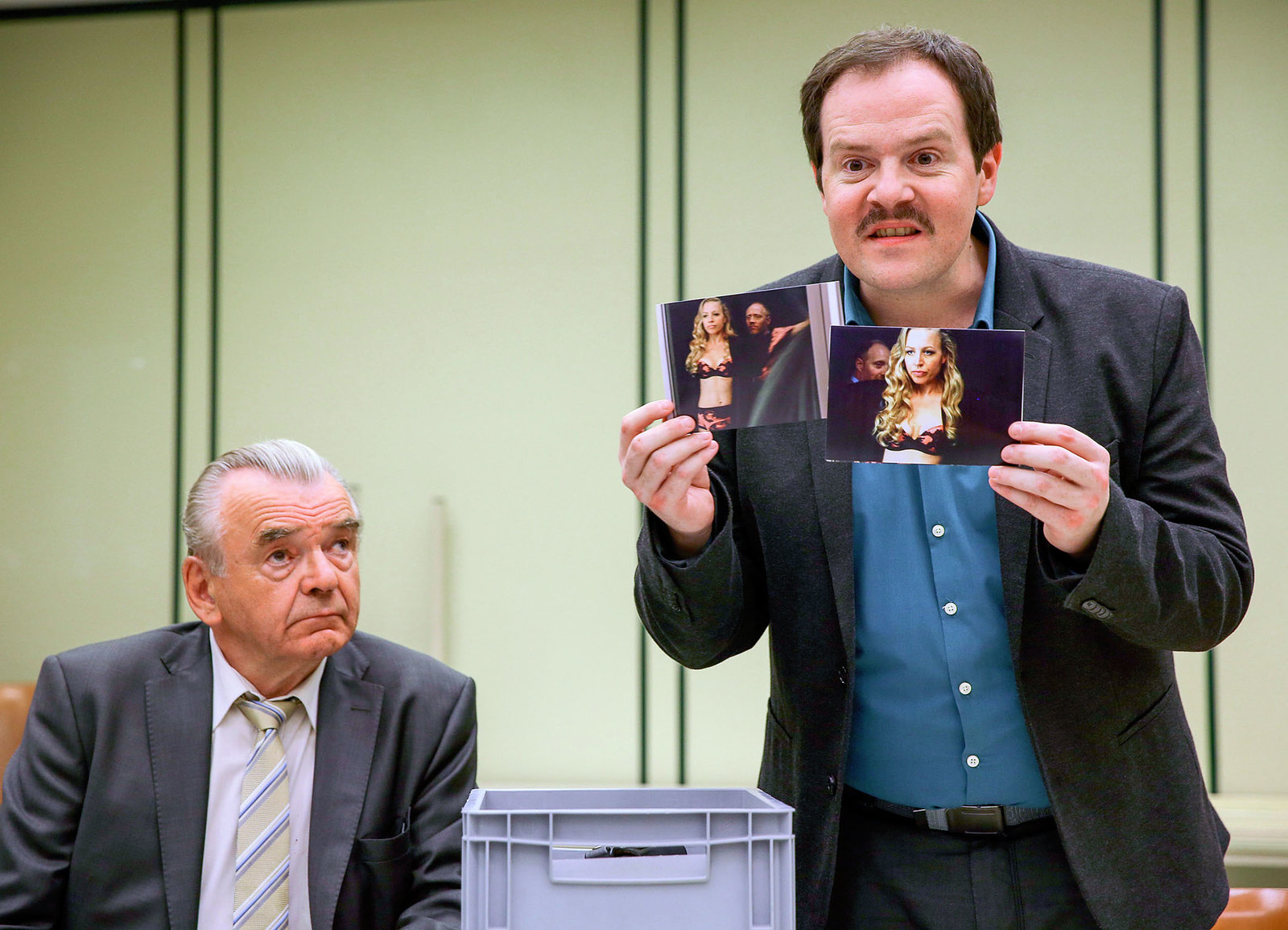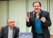 Schluss mit LustigDie Polizisten zeigen Beweisbilder: Branko Samarovski Bruno Pudschedl, Thomas Mraz als Jörg PudschedlBild: © SRF/ORF