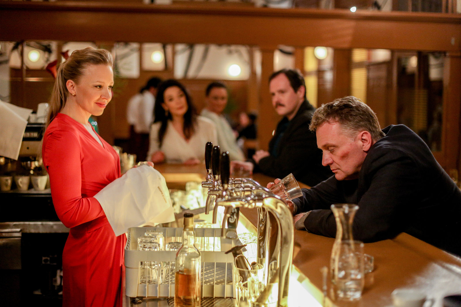 Folge 17Aggressive Stimmung: Juergen Maurer als Georg Schneider, Matthias Franz Stein als Günter, Johannes Nussbaum als Simon Schneider, Gerti Drassl als Maria Schneider, Hilde Dalik als VanessaBild: © SRF/ORF/MR Film/Petro Domenigg