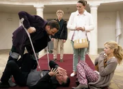 Folge 55Maria Schneider (Gerti Drassl, l.), Sonia Clementi (Ines Honsel, 2.v.l.), Nicoletta Huber (Nina Proll, 3.v.l.), Waltraud Steinberg (Maria Köstlinger, hinter), Hadrian Melzer (Bernhard Schir, r.).Bild: © ORF/MR Film/Petro Domenigg
