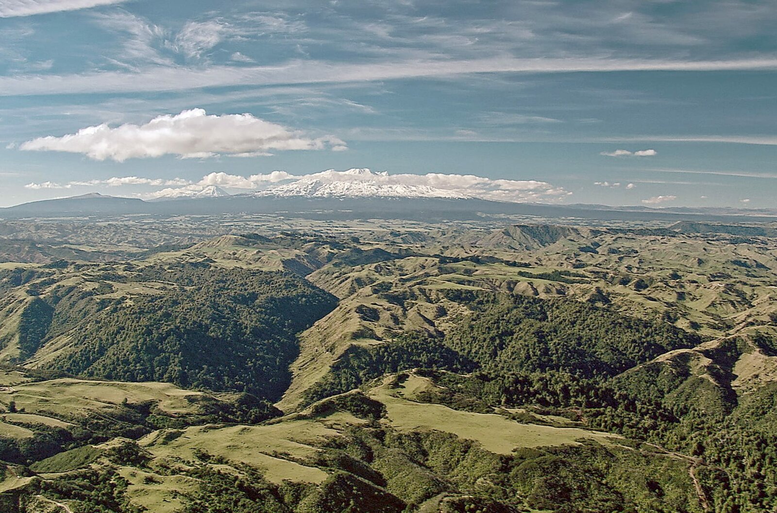 Schöpfung und ZerstörungDer Ruapehu im Hintergrund ist der höchste Vulkan Neuseelands und versorgt den Wald um ihn herum mit Mineralien und Nährstoffen.Bild: © ZDF / © Making Movies