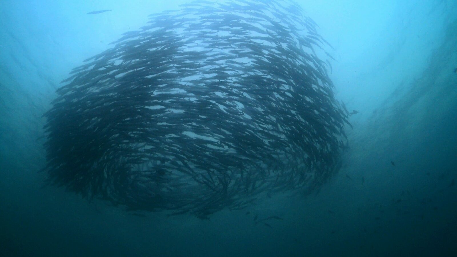 Unter WasserBei Gefahr bilden Schwarmfische eine kugelige Abwehrformation.Bild: © ZDF und Content Mint Pty Ltd.