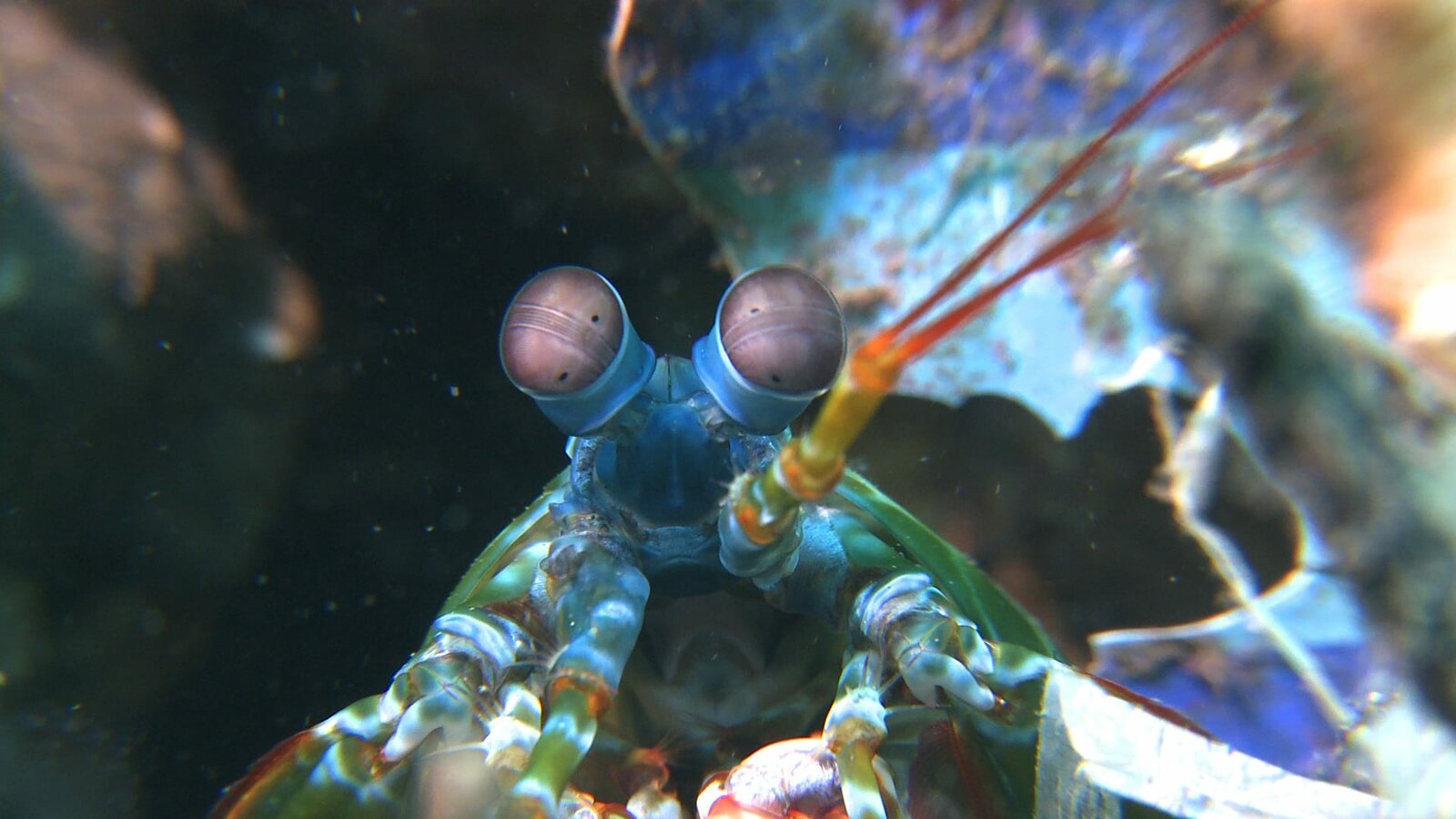 Unter WasserDer Fangschreckenkrebs hat zwei mächtige Keulen, die Schildkrötenpanzer knacken können.Bild: © ZDF und Content Mint Pty Ltd./Content Mint Pty Ltd