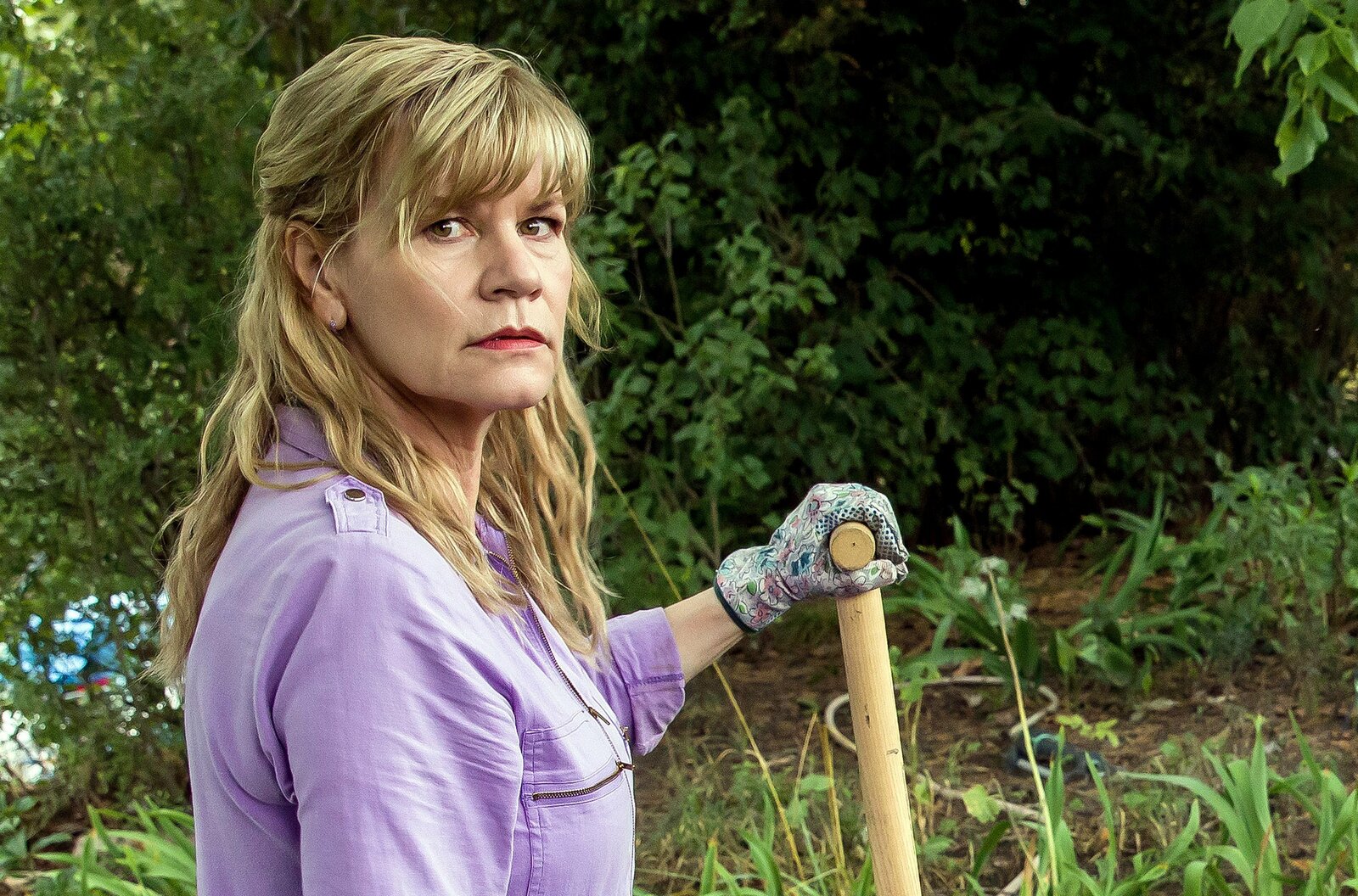 LaubenpieperUlrike Messmer (Anne Kasprik), Vorsitzende der Laubenkolonie wird überrascht als sie im Komposthaufen nach Beweisen sucht.Bild: © ARD/Daniela Incoronato