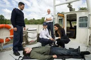 MS BettinaBernd Schrade (Steven Merting) hat das Ausflugsboot MS Bettina gekidnappt und hält die Partygäste als Geiseln.Bild: © ARD/Daniela Incoronato