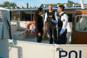 MS BettinaLagebesprechung an Bord der Silbermöwe: Jasmin Sayed (Sesede Terziyan, li.), Wolf Malletzke (Christoph Grunert, mi.) und Fahri Celik (Hassan Akkouch, re.)Bild: © ARD/Daniela Incoronato