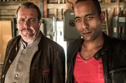 Fluch am EcksteinARD WATZMANN ERMITTELT, neue Krimiserie im Vorabend mit 8 Folgen ab (08.05.19) immer mittwochs um 18.50 Uhr im Ersten. Der Watzmann - das Wahrzeichen von Berchtesgaden. Groß, mächtig und unverrückbar. Wie Hauptkommissar Benedikt Beissl (Andreas Giebel, r.). Er liebt seine Heimat und führt sein Revier in Berchtesgaden quasi im Alleingang. Doch dann kommt ein neuer Kollege: Jerry Paulsen (Peter Marton,l.). Der ist nicht nur all das, was Beissl nicht ist, nämlich charmant, redselig und offenherzig. Als Sohn einer Deutschen und eines GI ist er auch noch dunkelhäutig. Damit hat Beissl an sich kein Problem. Vielmehr stört ihn, dass Jerry der Freund seiner geliebten Tochter Johanna (Ines Lutz, M.) ist - also quasi sein Schwiegersohn in spe. Schnell geht dieser „Möchtegern-Obama" mit seiner gewinnbringenden Art dem Beissl gehörig auf den Zwirn. Aber wenn die beiden ermitteln, bleibt das Private außen vor - die beiden sind Profis mit Haltung. © ARD/Susanne Bernhard, honorarfrei - Verwendung gemäß der AGB im engen inhaltlichen, redaktionellen Zusammenhang mit genannter ARD-Sendung und bei Nennung "Bild: ARD/Susanne Bernhard (S2). ARD-Programmdirektion/Bildredaktion, Tel: 089/5900 24302, Fax: 089/550-1259, bildredaktion@DasErste.deBild: © ARD/Susanne Bernhard / ARD-Programmdirektion
