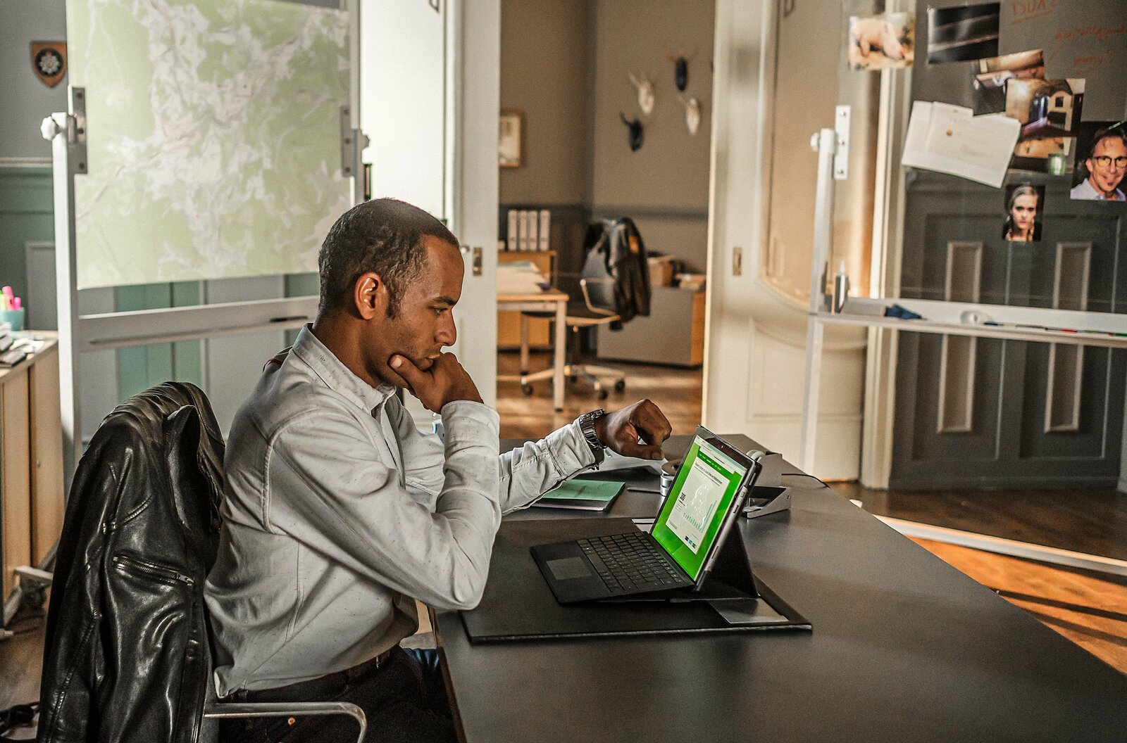 JamboJerry Paulsen (Peter Marton) recherchiert im Internet zum aktuellen Fall.Bild: © "Bild: ARD/Raymond Roemke (S2+). ARD-Programmdirektion/Bildredaktion