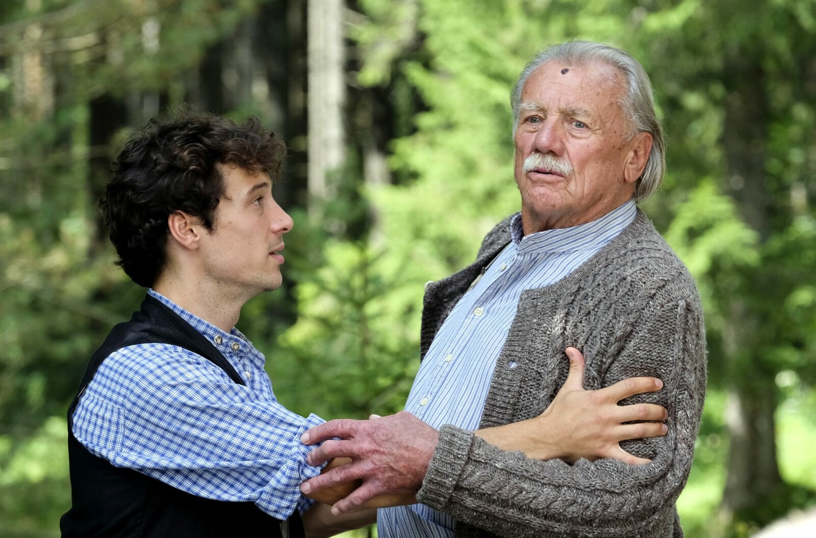 Der Alte vom BergChristian Lahner (Klaus Steinbacher, l.) hält Josef Lahner (Franz Buchrieser, r.) fest, der in die Familienfeier platzt.Bild: © "Bild: ARD/Susanne Bernhard (S2+). ARD-Programmdirektion/Bildredaktion