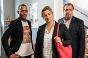 AlmsündeBenedikt Beissl (Andreas Giebel, l.), Jerry Paulsen (Peter Marton, M.) und Klarissa Zilch (Jasmin Lord, r.) sehen zu wie der Filialleiter von den Polizeibeamten abgeführt wird.Bild: © "Bild: ARD/Susanne Bernhard (S2). ARD-Programmdirektion/Bildredaktion