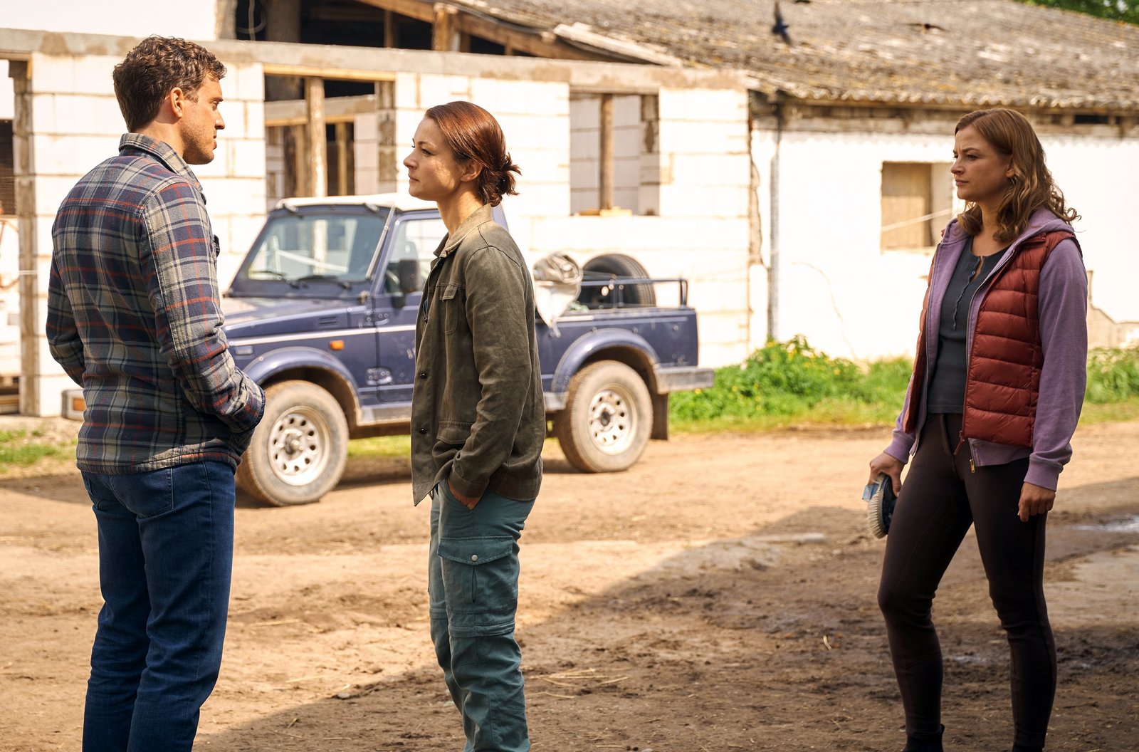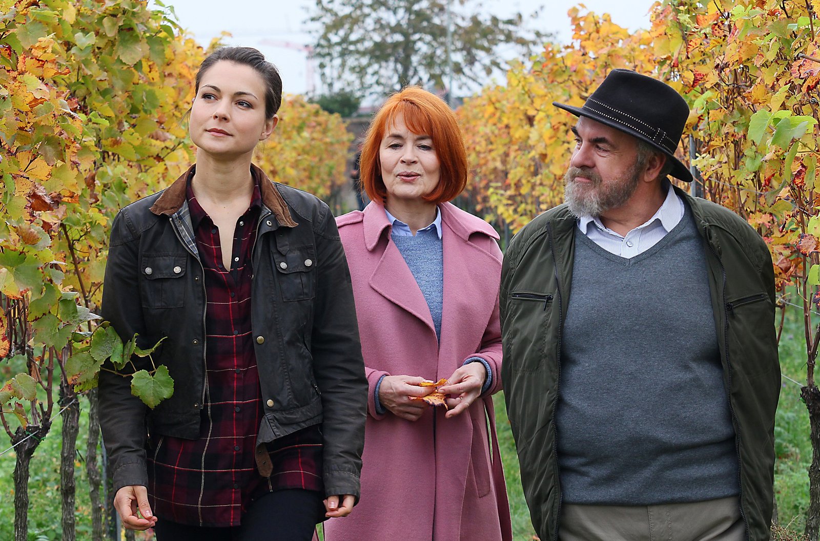 Das FamiliengeheimnisAnne (Henriette Richter-Röhl, re.) bekommt Probleme auf dem Weingut von Johannes Roscher (Achim Stellwagen) und Ehefrau Simone (Andrea Wolf).Bild: © HR/Degeto/Frank Dicks