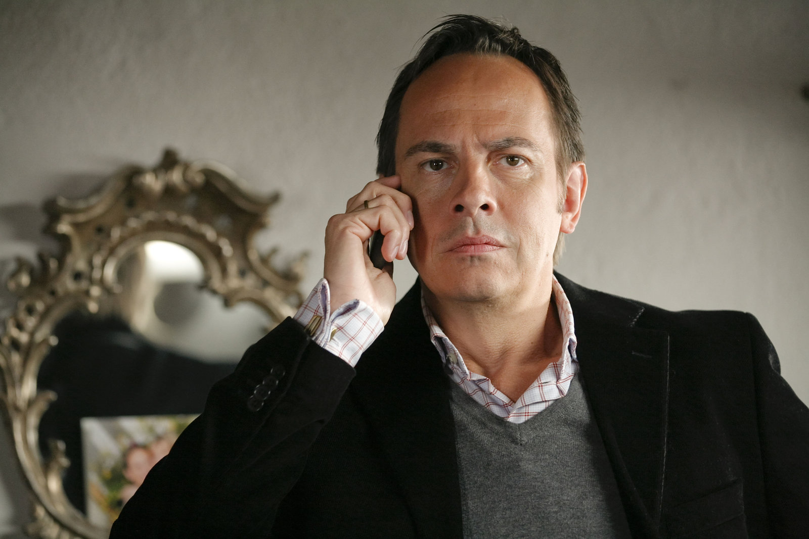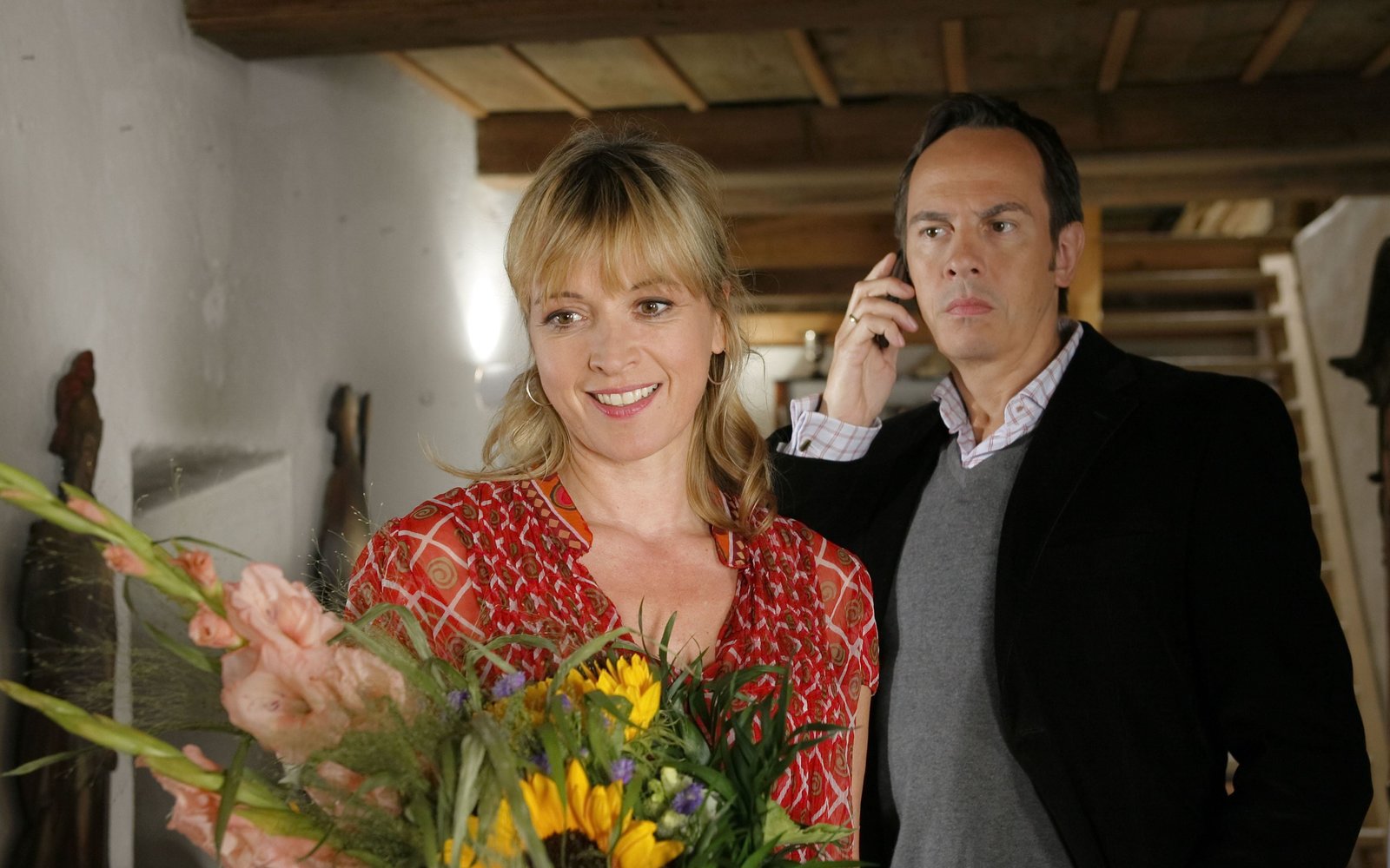 Ein schwerer AktFlorian (Wolf Roth) mißtraut seiner Frau Christine (Michaela May), die angeblich gerade einen Anruf ihrer Freundin bekommen hat.Bild: © ORF 2