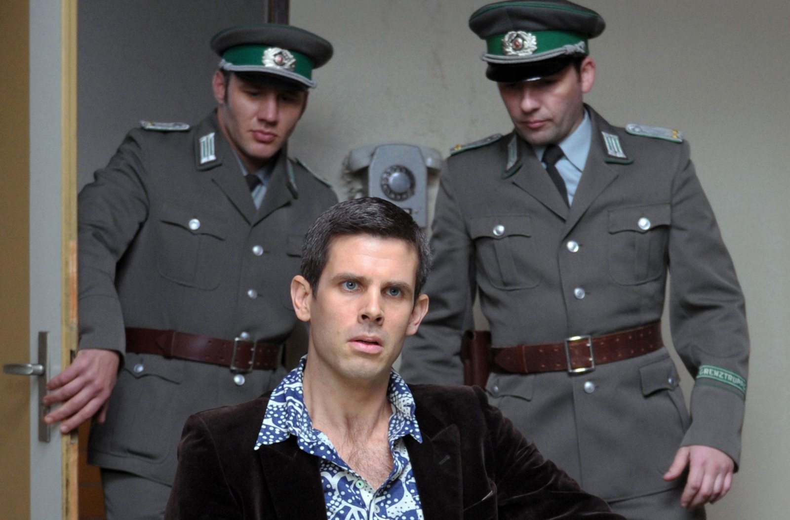 Die verlorene TochterRobert Schnyder (Steffen Groth, M.) wird wegen Beihilfe zur Republikflucht inhaftiert und im Vernehmungsraum von Falk verhört.Bild: © ARD/Julia Terjung