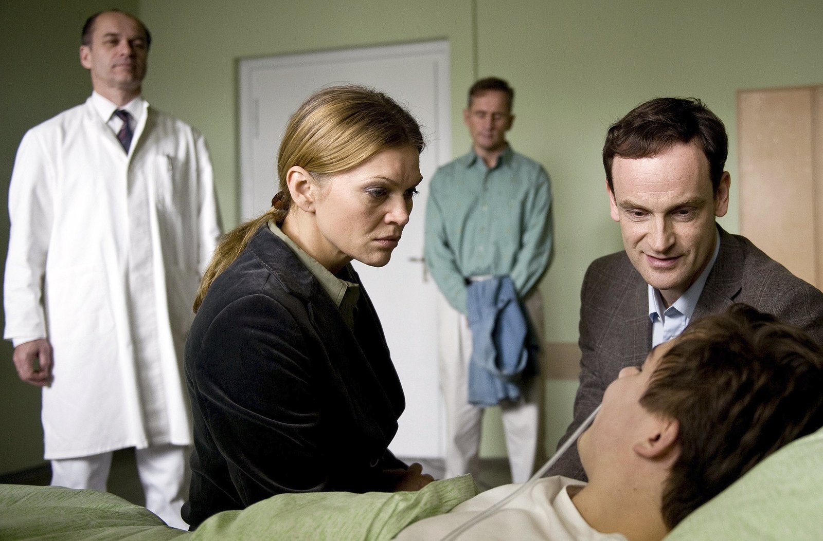 Der verlorene SohnARD WEISSENSEE, II. Staffel (6 neue Folgen), Folge 7 "Der verlorene Sohn", am Dienstag (17.09.13) um 20.15 Uhr im Ersten. Vera (Anna Loos, 2.v.l.) und Falk Kupfer (Jörg Hartmann, 2.v.r.) sorgen sich um ihren Sohn Roman (Ferdinand Lehmann, r.). Seine vielversprechende Sportlerkarriere ist beendet, seine Nieren sind durch Doping schwer geschädigt, ohne Spenderniere kann er laut Professor Holz (Horst Günter Marx, l.) nicht überleben.Bild: © ARD/Julia Terjung
