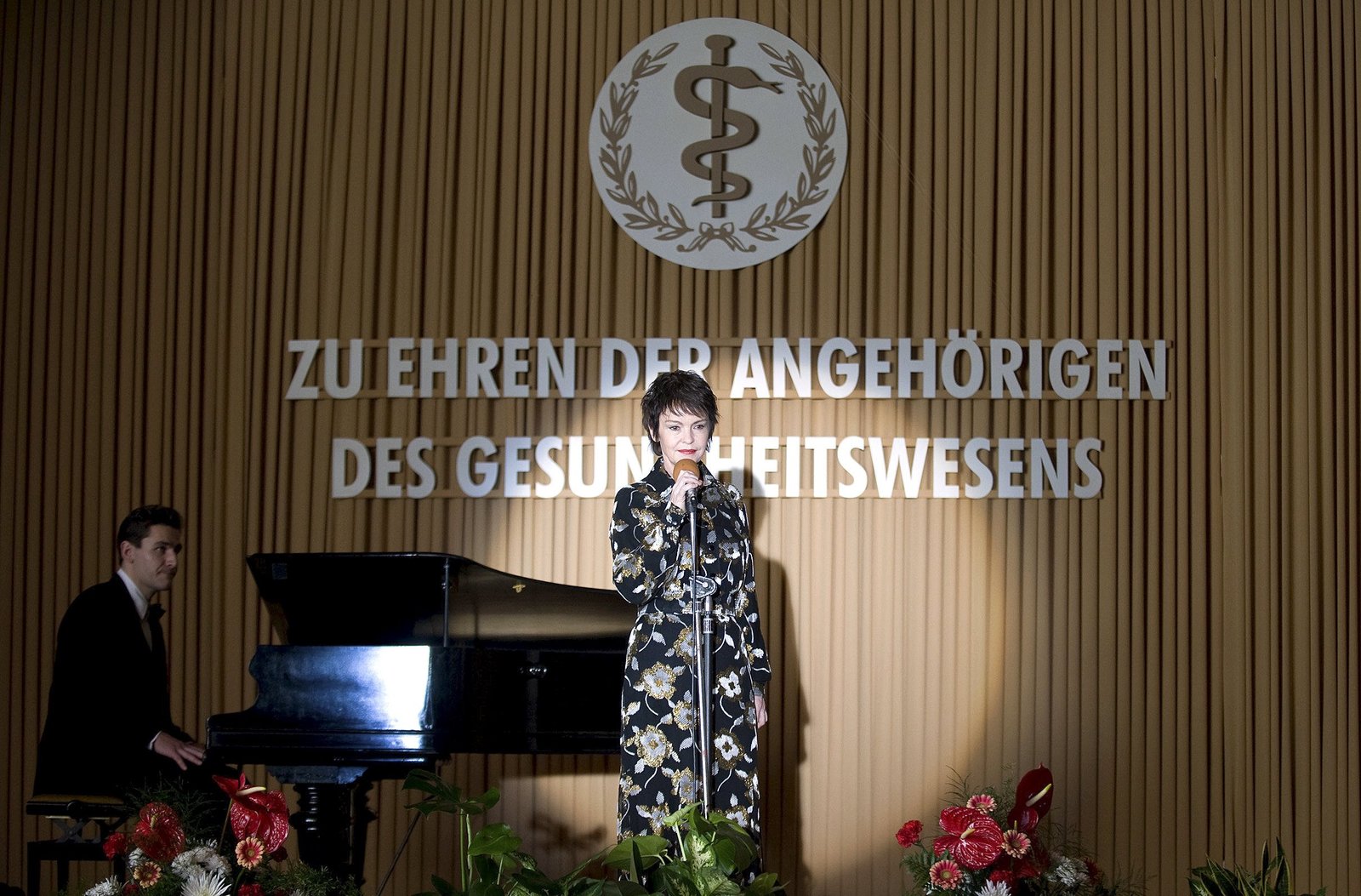 Die RückkehrARD WEISSENSEE, II. Staffel (6 neue Folgen), Folge 8 "Die Rückkehr", am Dienstag (24.09.13) um 20.15 Uhr im Ersten. Dunja Hausmann (Katrin Sass) singt auf Marlene Kupfers Ordensverleihung.Bild: © ARD/Julia Terjung